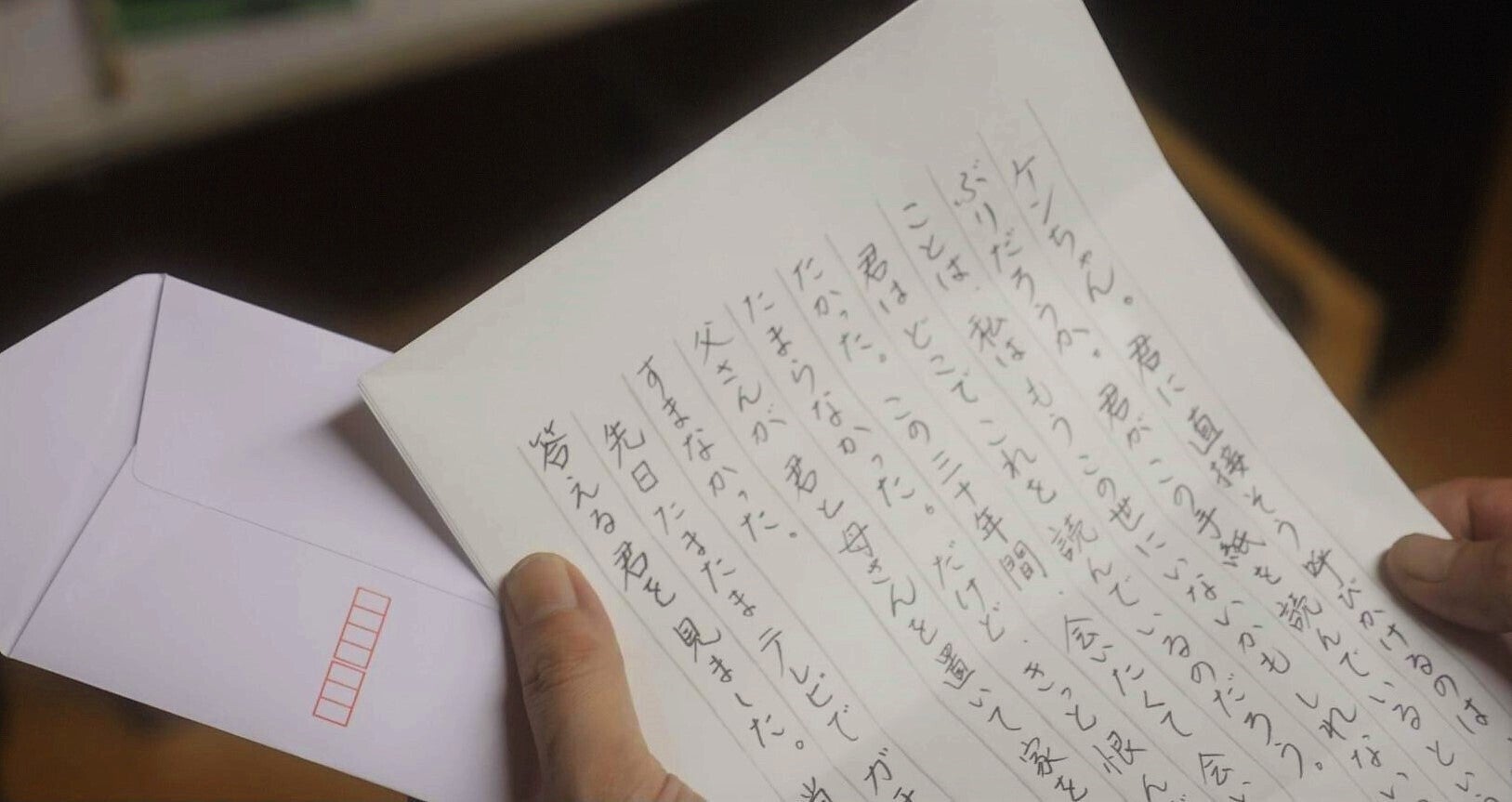 純一さんが「ここは生き別れた息子に思いを伝える大切なシーンなのでたとえ手紙が映像に映らなくても私が書きます」とおっしゃって綺麗な字で丁寧に書いてくださいました。