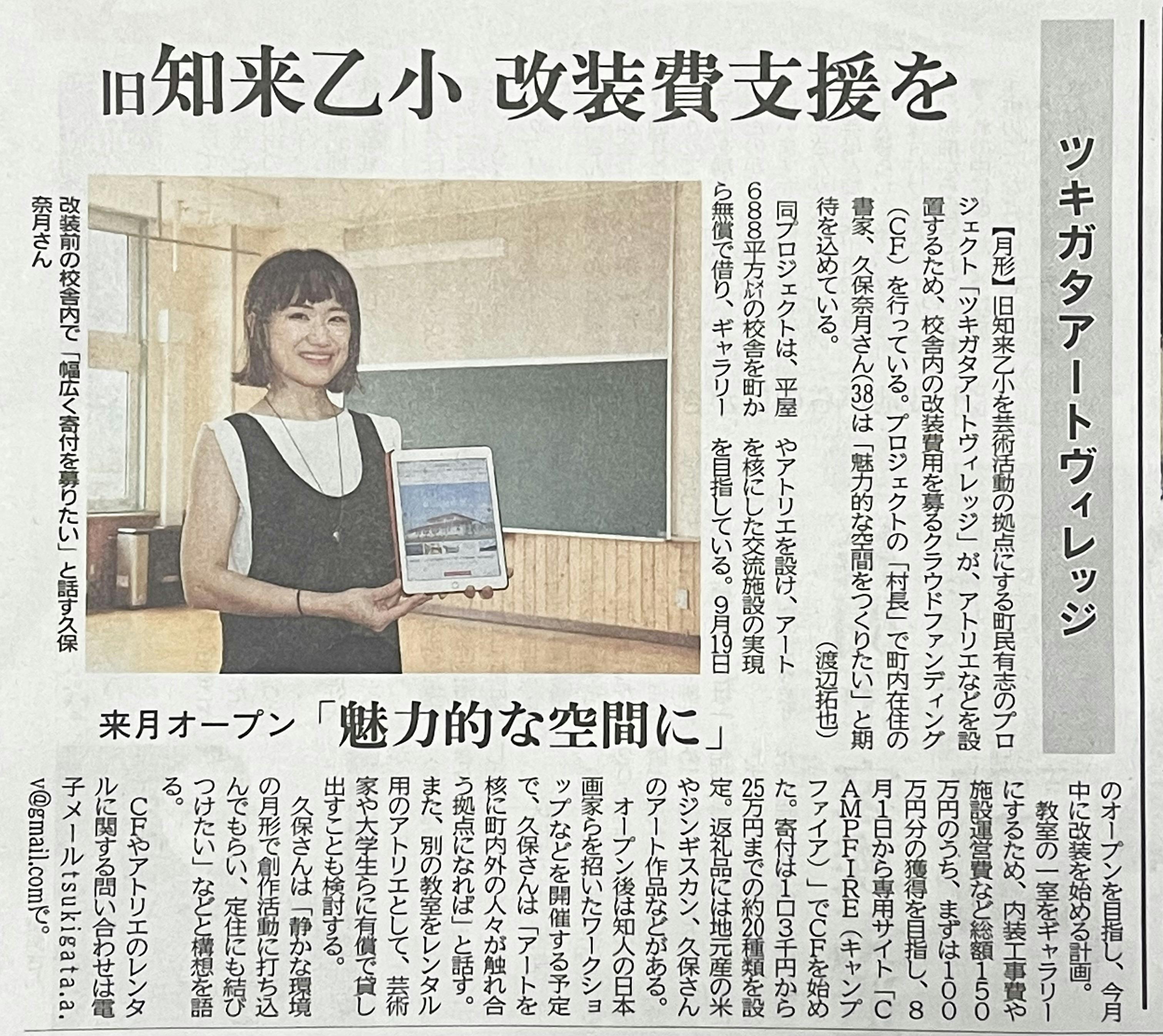 先日、「北海道新聞」 2022,8,17の 空知版 に、ツキガタアートヴィレッジのクラウドファンディングについての記事が掲載されました!!!!