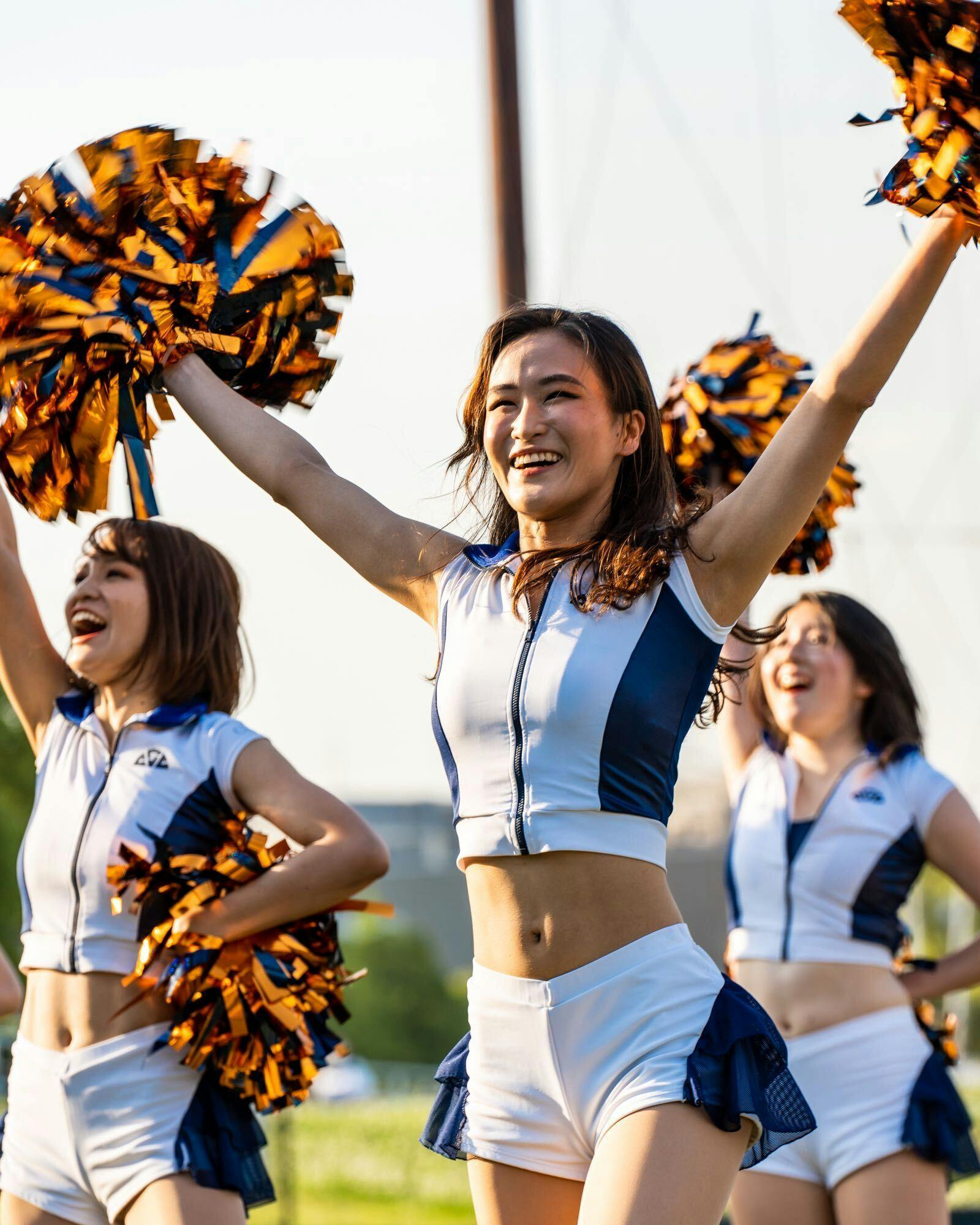 私は大学時代に応援指導部のチアで活動をしていました。自分がプレーヤーにならずとも熱量高く試合を応援し、選手と一緒になって一喜一憂出来ることがとても楽しかったです。社会人でも踊りを続けたいと考えた時、ただ踊るだけではなくて何か又は誰かの為になる演技ができたらやり甲斐が深まると考えて、チアチームへの所属を検討していました。 そんな中、大学の部活の先輩からたまたま品川CCでチアチームを設立する話を教えて頂き、トライアウトに参加する事を決めました!ご縁がありこのチームに入ることが出来、本当に良かったです!