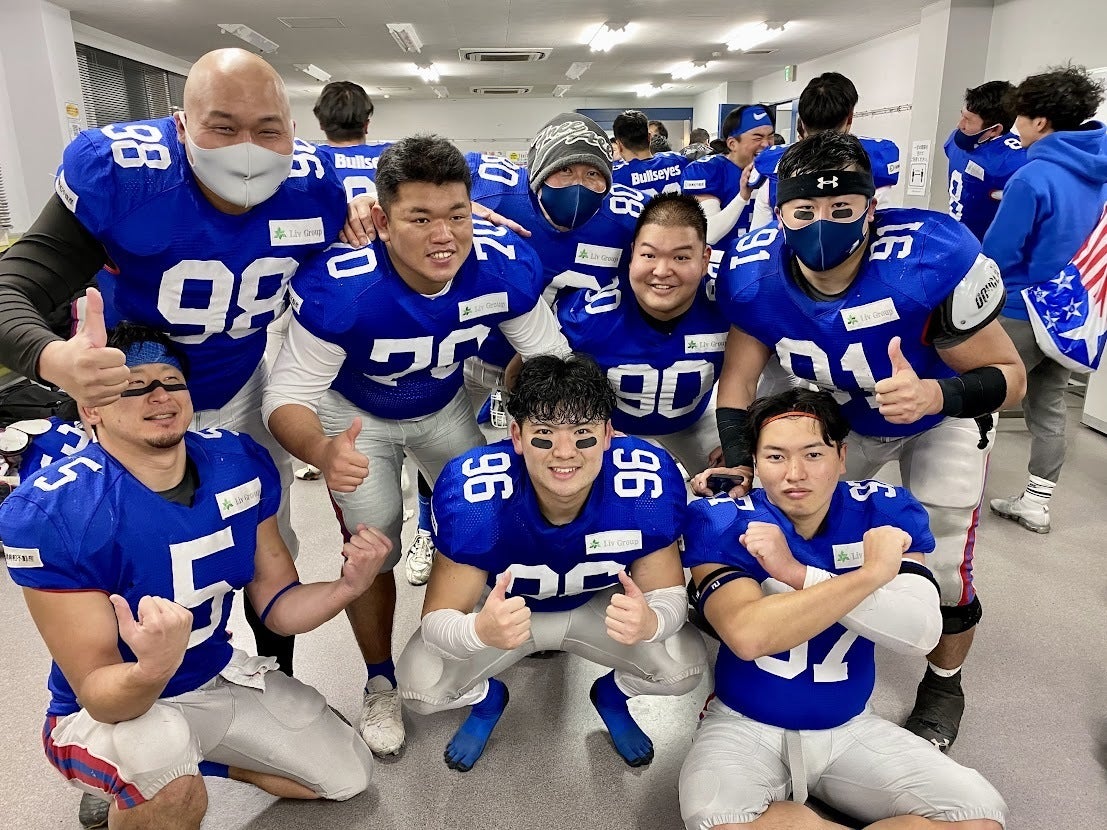 私が入部したのは2021年からです。2019年PERAL BOWL@東京ドームで前チームを引退してアメフトから離れていましたが、魂の震え上がる経験がまたしたいと思い、熱烈なアプローチをしてくれていた大学選抜仲間の#96住谷主将に誘われて入部しました。 何故ブルザイズかというと住谷主将に月1参加でいいからと言われたのと、メイングラウンドまで自転車で5分で通えるからです。しかし入ってみると月1では許されるわけないですし、メイングラウンドはコロナで使用が難しく、当初の決め手とはかけ離れてました。しかし、アメフトというのは私の生活になくてはならないものです。強い体の構築、美味しくご飯が食べられる、理由は様々ですが1番は自分を律することができるからです。社会人で仕事をしながらも、忙しいのを言い訳にせずにアメフトに取り組む。トレーニングも頑張る。その行いこそが私にとって人生の充実さを与えてくれます。