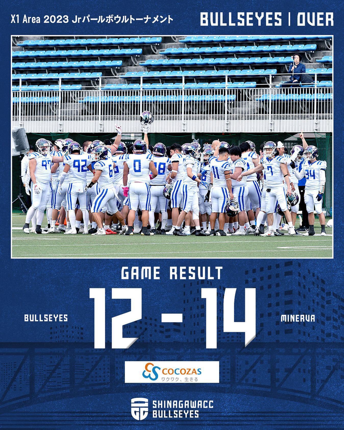 5/14 日曜日、春のJr.パールボウルトーナメント初戦は昨年12vs.30と惨敗を喫した富士フイルム海老名ミネルヴァ戦。試合序盤に敵陣深くからのパスをインターセプトするプレーから、先制点を獲得。攻撃も激しい相手守備のプレッシャーの中、ワンチャンスを活かしパスTDを獲得する等、最後まで喰らいつきましたが、惜しくも12vs.14で敗戦となりました。