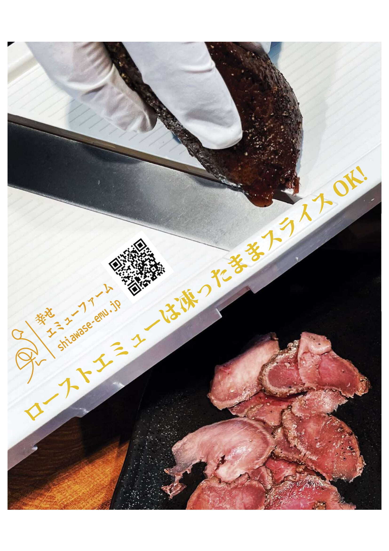 ローストエミューは凍ったままスライスできる。