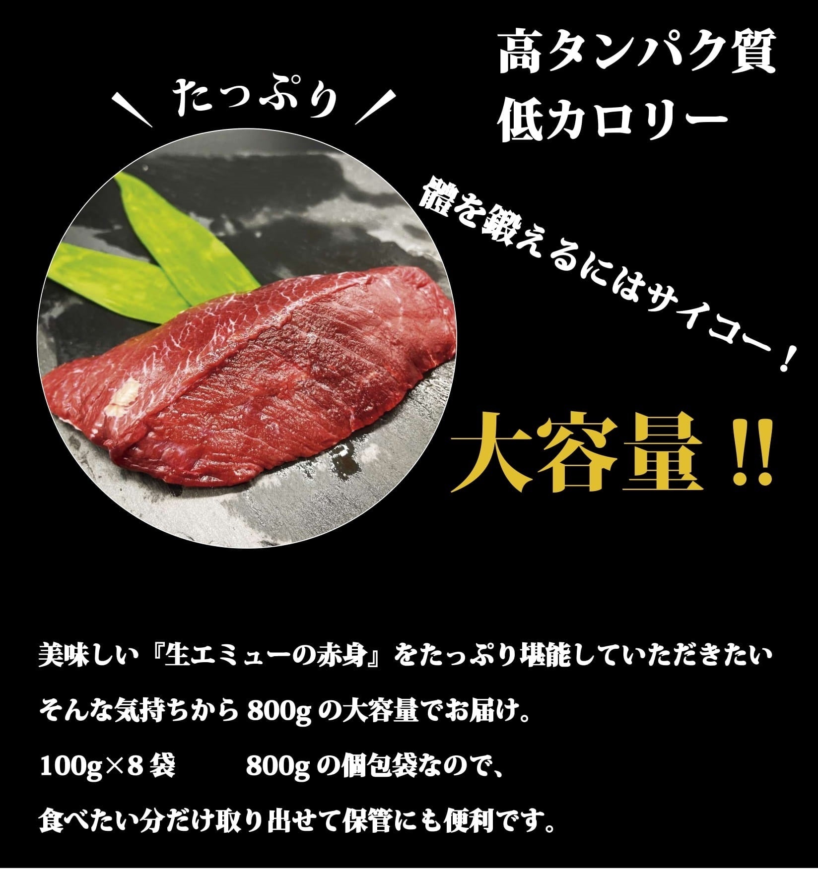 【高タンパク、低カロリー、生エミュー赤身】