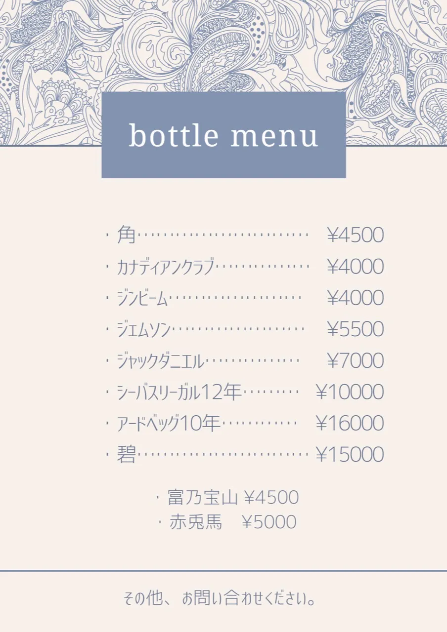 ボトルメニュー