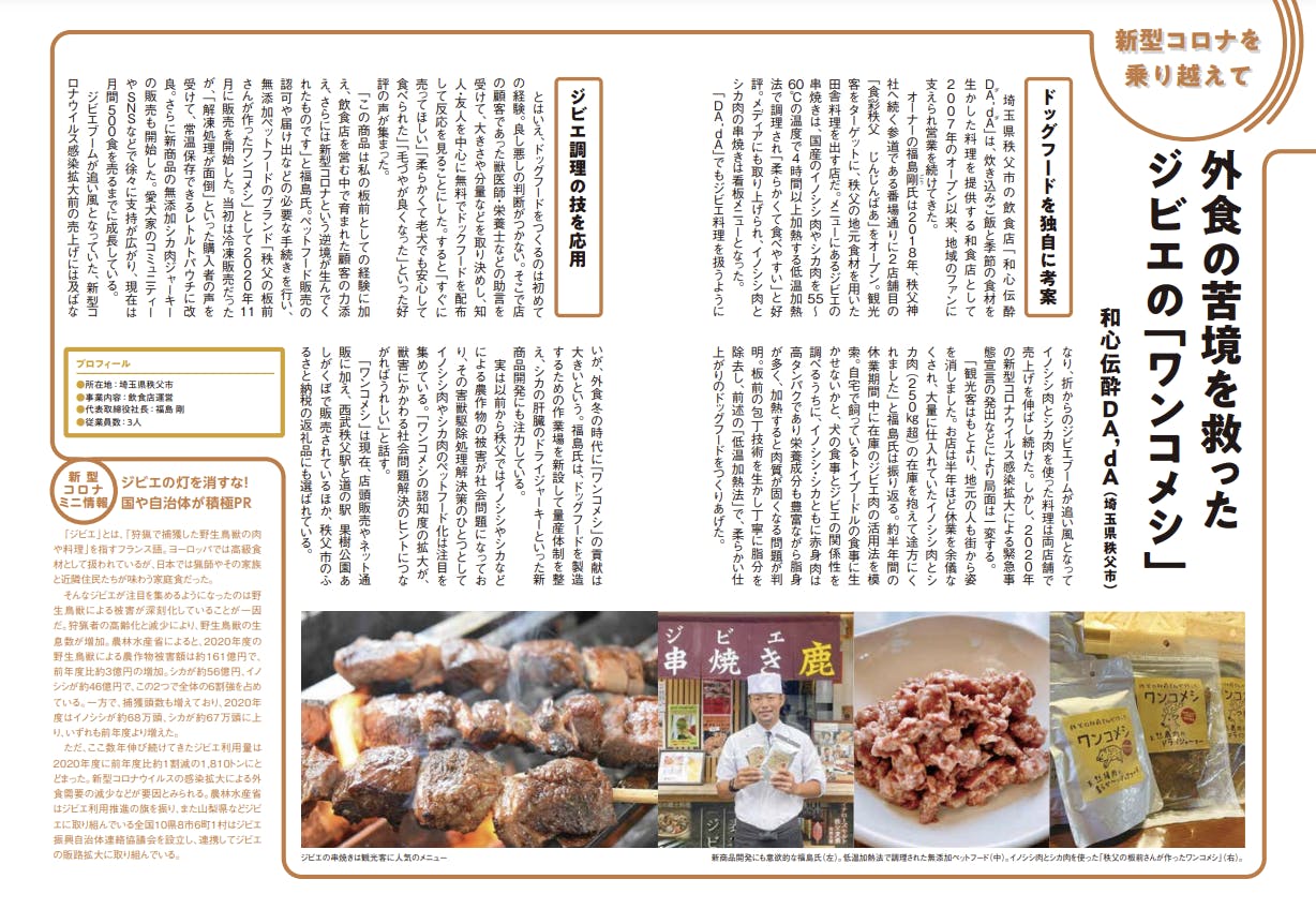 ・NISSAY-日本生命-「経営情報」 〜外食の苦境を救ったジビエの「ワンコメシ」〜というタイトルにて掲載