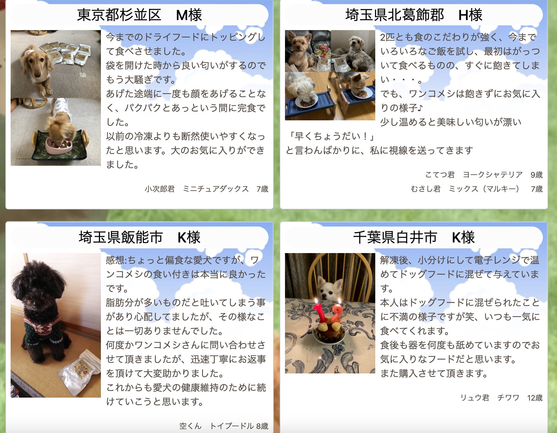 「ワンコメシ」を実際にご利用頂いた方からのコメントを一部ご紹介させて頂きます!