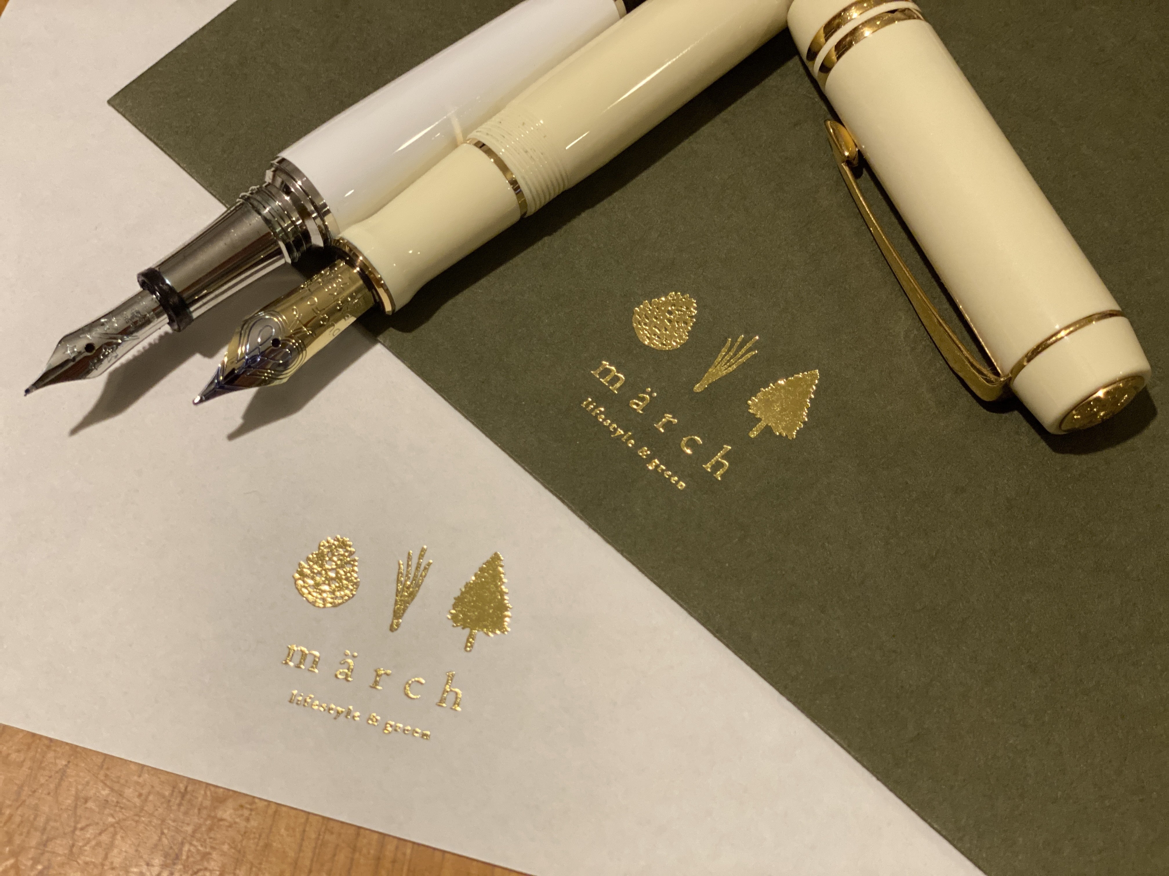 2022/11/05 21:53こんにちはmarchの松岡です。今回は商品券発送のお知らせと、その発送にまつわる資金活用のお話です。商品券なんて印刷だから、すぐできたんじゃないの?と思われる方もいらっしゃったと思います(なのに誰一人まだ?なんて問い合わせをいただくことなく、おひとりおひとりじっくり待ってていただいてとっても嬉しいです!marchはこんな素敵な方々に支援いただいているんだぞ!と誇らしいです)実は商品券そのものに時間がかかったのではなく、一緒にお送りするお手紙に時間がかかったのでした。なぜかというと、それが資金活用の第3弾だからです。私はお手紙を書くときは基本万年筆を使うのですが、万年筆のインクはどうしても紙を選んでしまうところがあります。透け、滲み、はたまたインクの持つぬらぬら感がきちんと残るか(こちらはさらに好みですね)など・・・。当店で扱っている商品や、先に作ったポストカードは正直万年筆との相性がコレ!というのがなく(批判ではないです念のため。ゲルインキでどれも高発色で書けることを試して店頭に出してます)。特に、PARKERのインクが滲みやすく、色んなメーカーさんの紙を使ってテストしましたがどうしても好みのノリにならない。実はこのテストは6月、クラウドファンディングを始めたときから行っていました。子供の付き添い入院にも病室に紙をたくさん持ち込んでテストしていました(笑)ある紙の試し書き。一番上はM(中字)でもこれだけ滲みました。裏で書いてやっと滲まなくなりました。そしてたどりついたのが、バンクペーパーという紙。これは60年代に三菱製紙が銀行の帳簿用紙として開発した紙で、様々なペンの筆記特性を受け止める私好みの紙でした。しかも「THREE DIAMONDS」のウォーターマーク入り。高級紙の証です。早速、得意の中村印刷さんに相談。「バンクペーパーに箔押しでお店のロゴを入れたレターセットを作りたい」封筒も、私が好きな紙のひとつ、ビオトープGAで同様にゴールドの箔押し。色はお店のキーカラーであるオリーブ色をチョイスしました。ゴールド箔との相性がとってもいいです。最初はフォーマルにも使えるようにダイヤモンド貼りを考えていましたが、もっと気軽に手紙を書いてほしいので、あえてカマス貼りに変更。出典:https://standard-size.com/envelope/y4naga/そうやって紙選びと、やはり特殊紙なので取り寄せだったり、箔押し加工だったりで制作もそこそこの時間を要しましたが、中村印刷さんに頑張っていただきました。クラウドファンディングをした方からすればリターンが目的かと思いますが、私からすればご支援いただいた方にお礼を述べるお手紙が最も大事なコミュニケーションツールなので、そこに時間をかけてしまいました。重ねて言えば、やはり寝不足でボーッとしているため書き損じがものすごい量になり、お手紙を書くことそもそもに膨大なロスと時間がかかってしまいました。本当に申し訳ありません。お手紙は「筆記具を使って書く」ということをすっかりしなくなったので、手がすぐアカン!となってしまうため、PARKERとMONTBLANCの2種を使って書いています。ので件の滲みにくさを実感できないものもあるかもしれませんが悪しからず+あと字が汚い(笑)でも、インクのノリはとってもいいので、そのへん是非ご覧ください。そうやって、どうにかお手紙をしたため、発送にこぎつけました。お買い物券はやはり金券でもありますので、書留で送りました。特にご不在が多い方にはご面倒ですがお受け取りをお願いいたします。このバンクペーパーを使用したレターセットも少しですが製品として販売予定で、準備が出来次第店頭に並べる予定です。*箔押しのレターセットをお手紙に使用しているのはお買い物券の返礼品のみです。 グラスとポストカードのセットの方は箔なしのバンクペーパーです。ごめんね。 返礼品によってお手紙の紙や使用している筆記具は異なります。ウォーターマークのTHREE DIAMONDSそしてそして資金活用ではないのですが、これまでに作った命名札やカーステッカーなどの卸をはじめまして。早速福岡県中間市のchabbitさまで取り扱いがスタート、リピートも頂戴しております。ほんとうにありがたいことです。 もっと見る