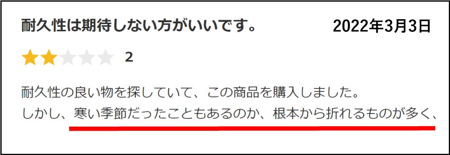 そのため、冬~春先の乾燥期は耐久力が落ちてしまい羽が折れやすくなるとのお声をいただきました。