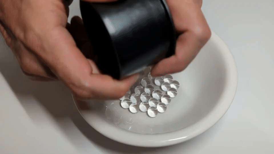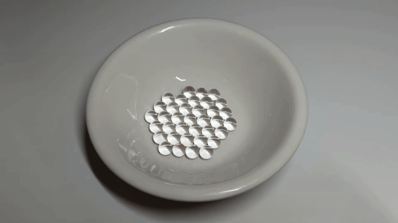 吸水させたビーズ玉を分離した上蓋と底蓋に5個ずつ入れ、蓋を完成させます。
