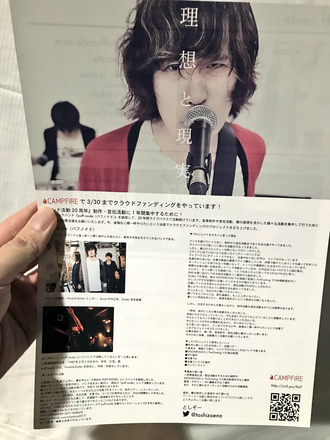 事後報告とは、なりますがライブなどで約1000枚のチラシを印刷して配ってます。
