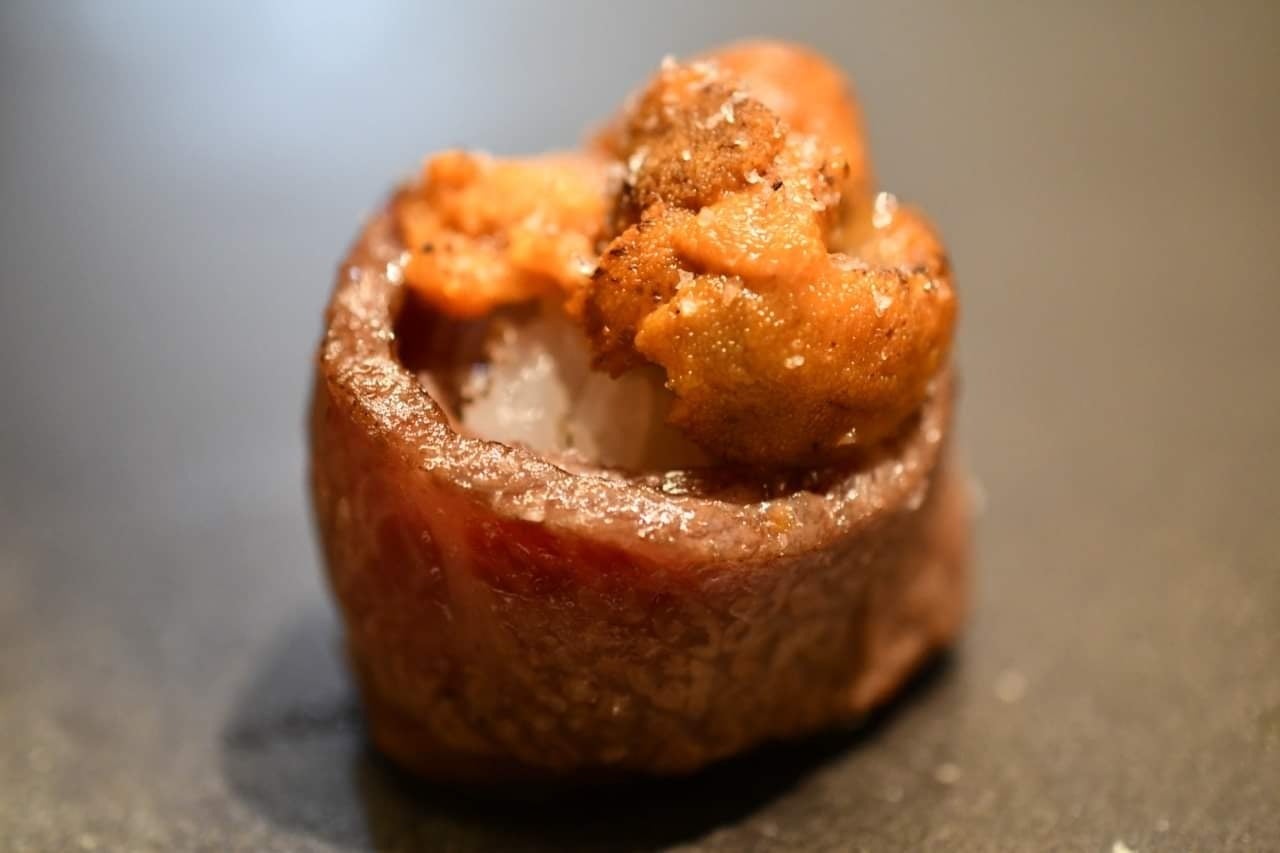 熟成肉とうにのコラボレーションお寿司”うにく”を開発し登録商標を持つ店舗です。
