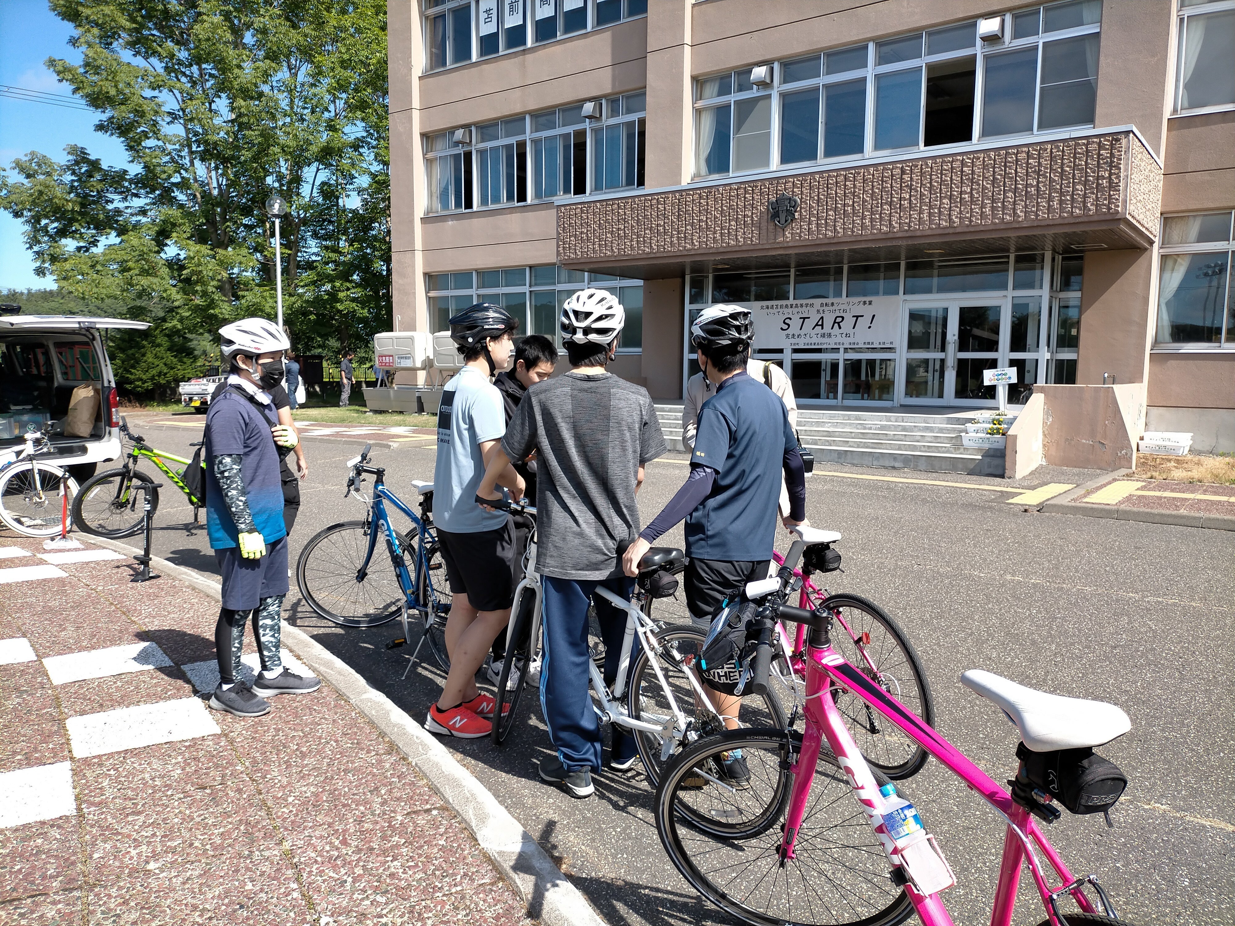 7月28日(木)ツーリング3日目〈最終日〉 7:00起床で7:30から朝食をたべました 朝食はお味噌汁やいろいろな種類のおかずをいただきました ホタテの稚貝が入ったお味噌汁がとても美味しかったです 出発前にチームの結束を高めるためにゲームをし心と体をあたためました ゲームの様子 8:30頃NHKの取材も入りちょっとドキドキしながらお揃いのTシャツを着て旭温泉を出発しました 1日目に経験したアップダウンの多い道を逆方向から通りました 相変わらずアップダウンが激しくてつらい思いをしましたが自分で自分を励ましたりメンバー同士声をかけながら乗り越えました スタート直後 1日目に寄れなかったしょさんべつ天文台で絶景の日本海をバックにみんなのテンションもアップ いつか星に名前を付けに訪れたいです そしてオロロン鳥モニュメントをめがけてまた走り出しました オロロン鳥モニュメントでは自転車で一人旅をしている13歳の男の子と出会いエールを送りつつ自分たちも頑張ろうという気持ちに火が付きましたしょさんべつ天文台で写真撮影オロロン鳥での記念撮影 昼ご飯ははぼろバラ園でそうめんとお弁当を食べました 昼寝をしたり海鳥センターを覗いたりなどゆっくり過ごしラストスパートに向けて体を休めましたバラ園での昼食 苫前町役場では役場の皆様に出てきてくださりスポーツ飲料の差し入れもいただきました 苫前町長から「ここから先登りはないから楽しんで」とお声掛けをいただきましたとままえだベアーの前で記念撮影 学校には14:30に到着し、沢山の保護者の方や町民の皆様そして先生にお出迎えいただきました 自分たちが走ってみて感じたことや成長したことを一人ずつ話をしサポートをしてくれている方々に感謝を伝え記念撮影をしました到着式の様子 クラウドファンディングや差し入れ、サポーターとしてなど援助してくださった沢山の支援者の皆様、この度は本当にありがとうございました 私たち苫前商業高校の活動は沢山の方々の支えがあって成り立っています 支援をいただけることが当たり前だととらえずに感謝をもって日々活動していきます 9月完成を目指してYouTubeへアップする動画の作成や支援していただいた方々へのお礼などに取り掛かります 今後ともよろしくお願いします