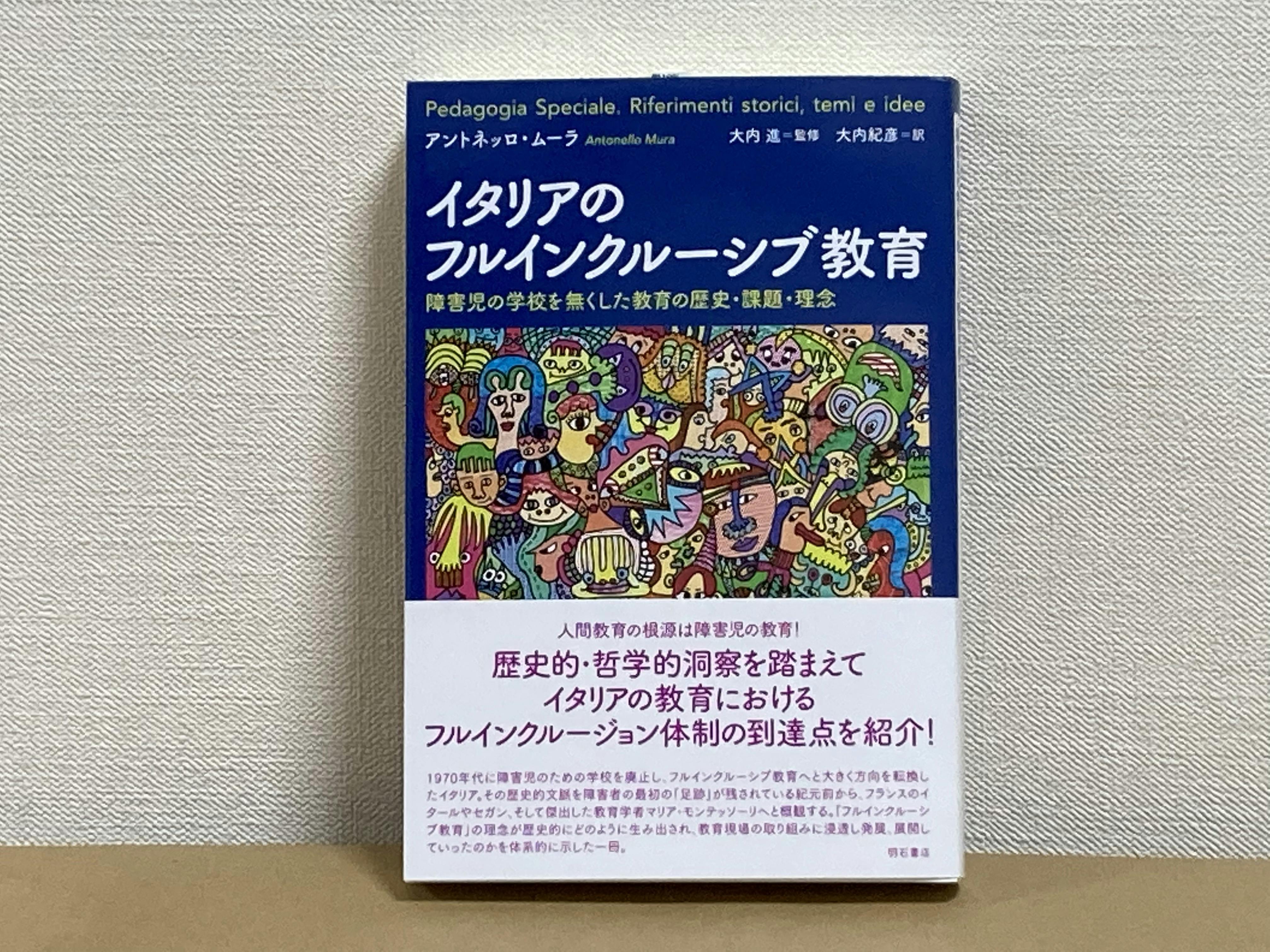 本書の原著に当たる書籍は、イタリアで2012年に出版されたアントネッロ・ムーラ著『Pedagogia speciale. Riferimenti storici, temi e idee(『ぺダゴジア・スぺチャーレ その歴史・主題・理念』)です。ちなみに、「ぺダゴジア・スぺチャーレ」は直訳すると「特別教育」となりますが、現在の日本の「特別支援教育」とは、ベクトルの方向が異なっており、本書にはそのことが丁寧に記されています。著者のムーラ氏は、イタリアのカリアリ大学で教鞭をとっておられ、本書はイタリアの大学で教科書的に活用されています。そして、この1冊でイタリアのフルインクルーシブ教育の歴史、主題、理念といったものが、体系的に学べるようになっています。
