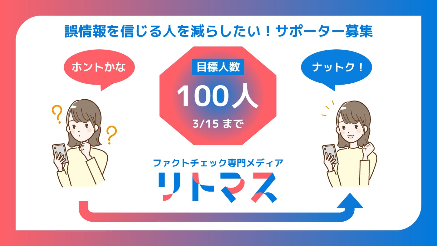 この度、設立一周年を迎えたリトマスは、二年目でさらに多くのファクトチェック記事を発表していくため、継続的に支援してくださるサポーターの募集を開始しました。