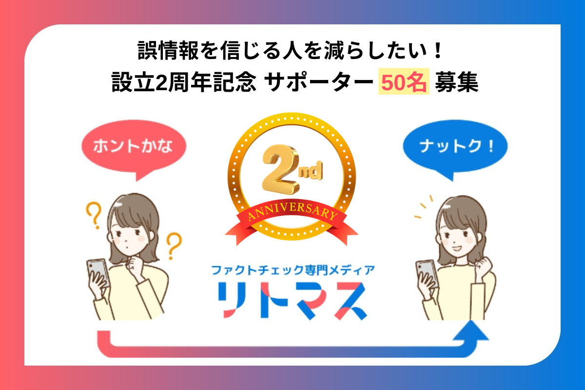 リトマスは、3年目でさらに多くのファクトチェック記事を発表していくための体制作りに向け、継続的に支援してくださるサポーターの募集を開始しました。
