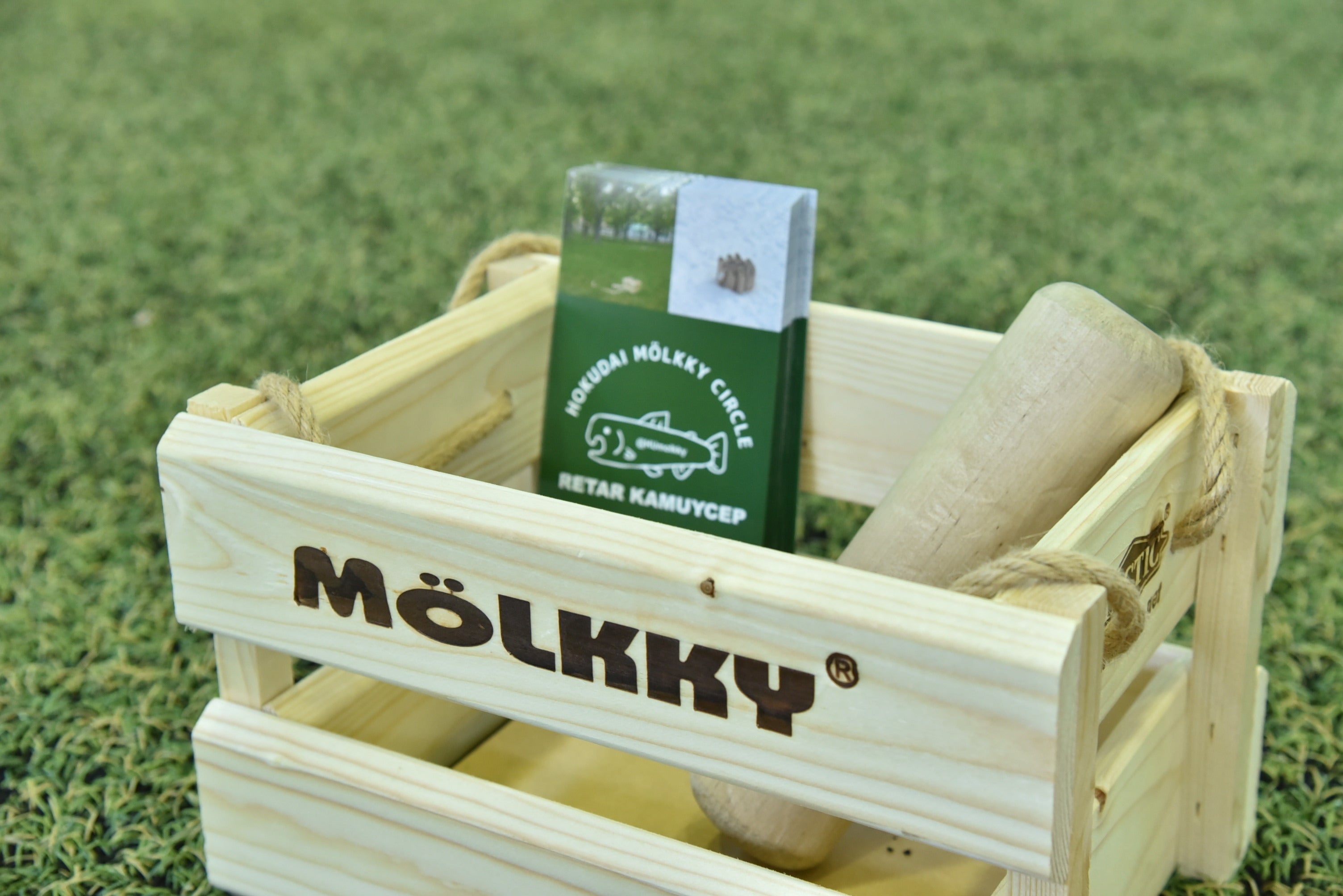モルックという木の棒をスキットルという12本の木のピンに向かって交互に投げて倒し、先に50点ちょうどを取ったチームが勝ちというシンプルなルールですが、試合展開に応じて相手の戦術を読み合う必要があり、奥の深いゲームです。