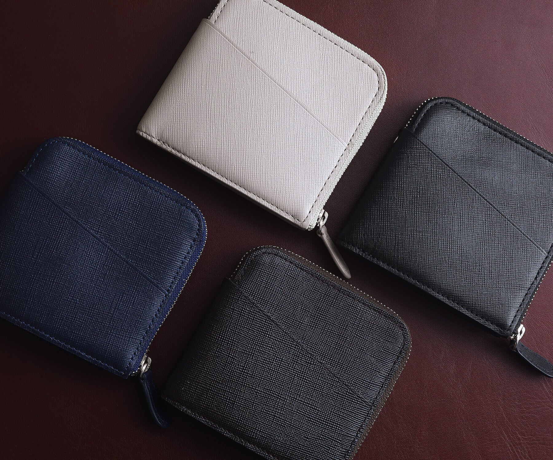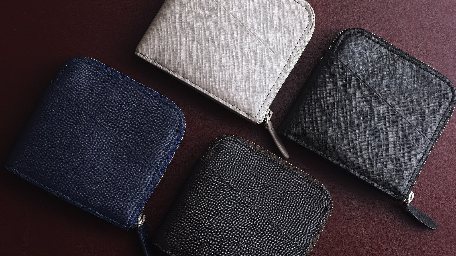 シンプルなデザインを引き立てる4色のサフィアーノレザーで仕上げました。