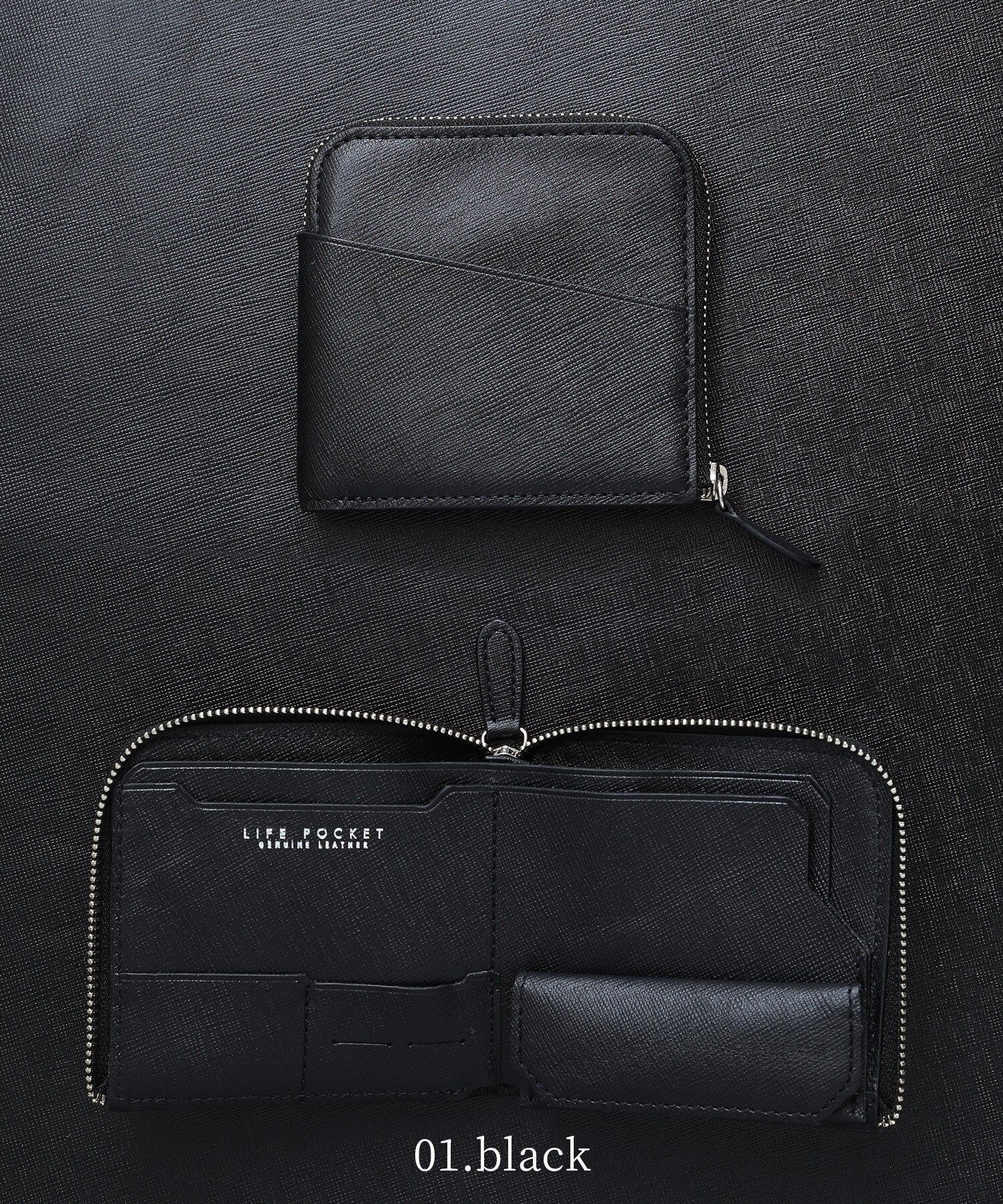 サフィアーノレザーの正式名称は「サフィアノメタルオロ」といい、牛革に型押し加工が施されたものを指します。LIFE POCKET製品のサフィアーノレザーは丈夫で軽く、キズや汚れがつきにくいことが特徴です。