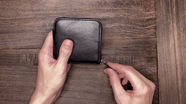 コインポケットが深いと、硬貨を探すのも取り出すのもスムーズにできません。しかし、浅く大きく開くコインポケットなら必要な硬貨をすぐに見つけて取り出せます。ファスナーを閉じれば、コインがこぼれる心配はありません。