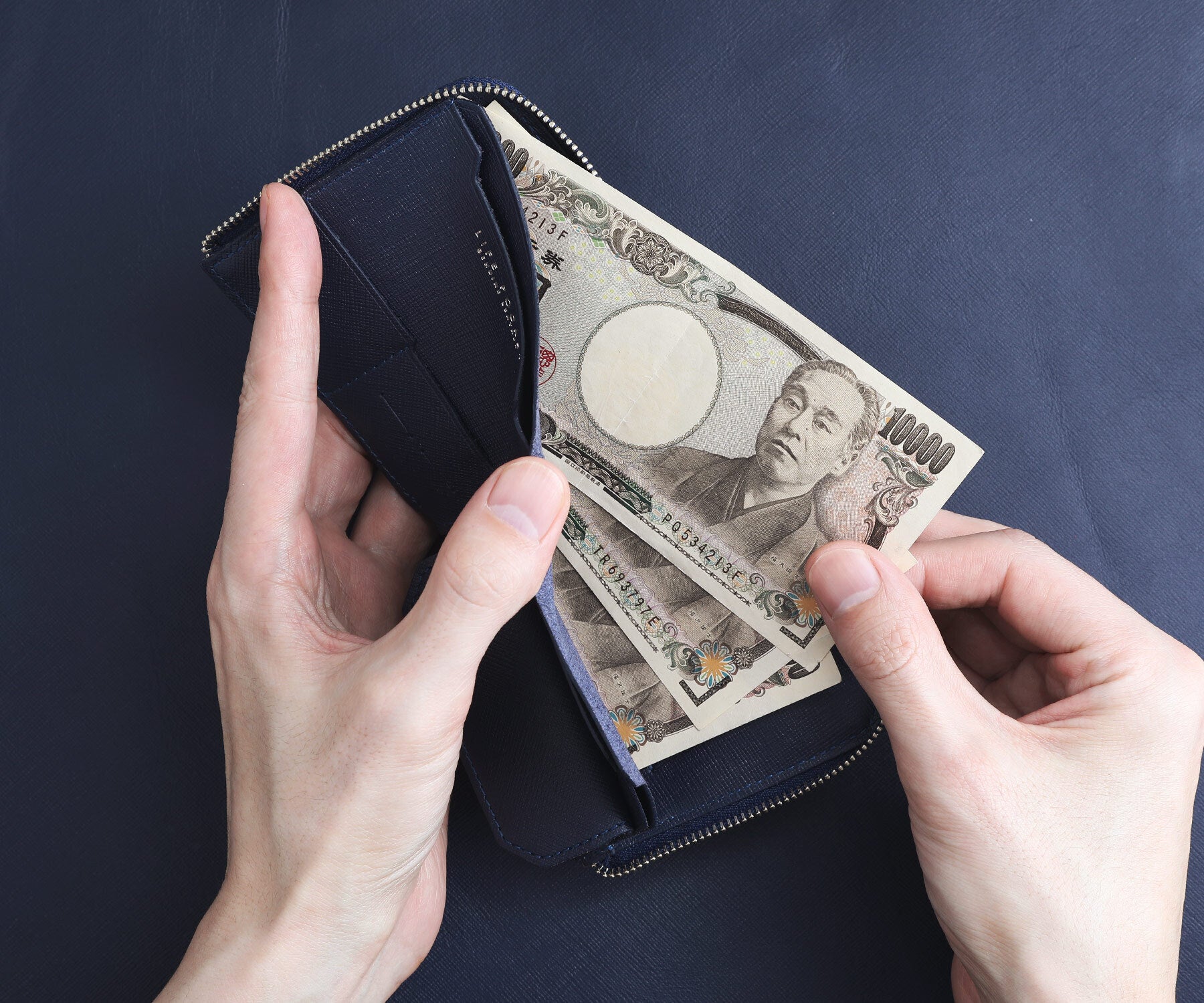 LIFE POCKET製品に起用するサフィアーノレザーは耐久性に優れているため型崩れしにくく、長く美しいフォルムを保つことができます。