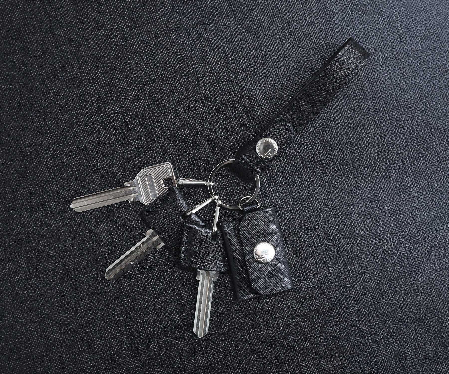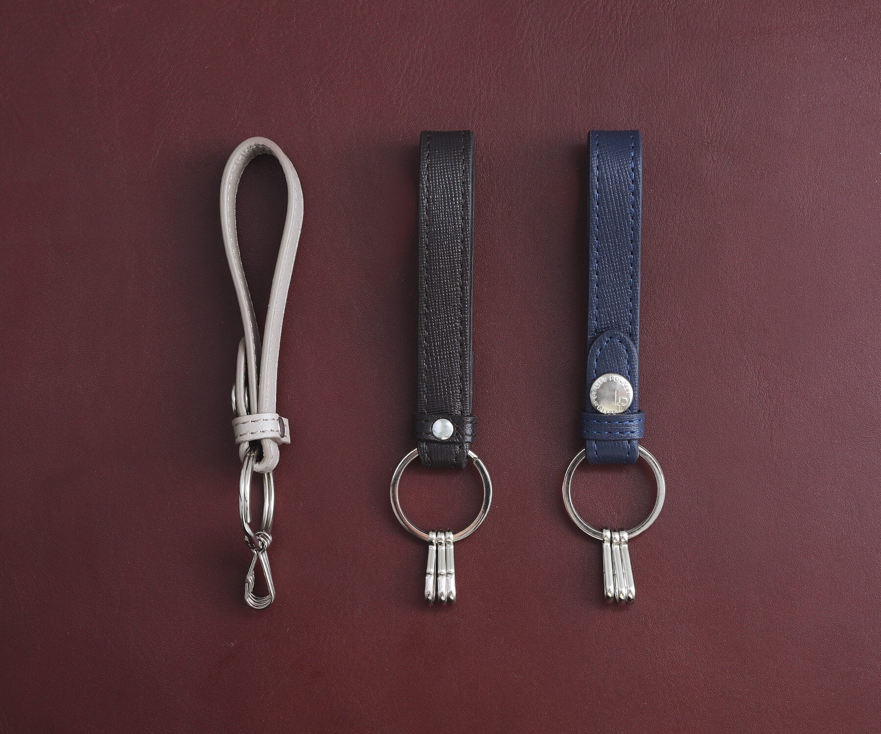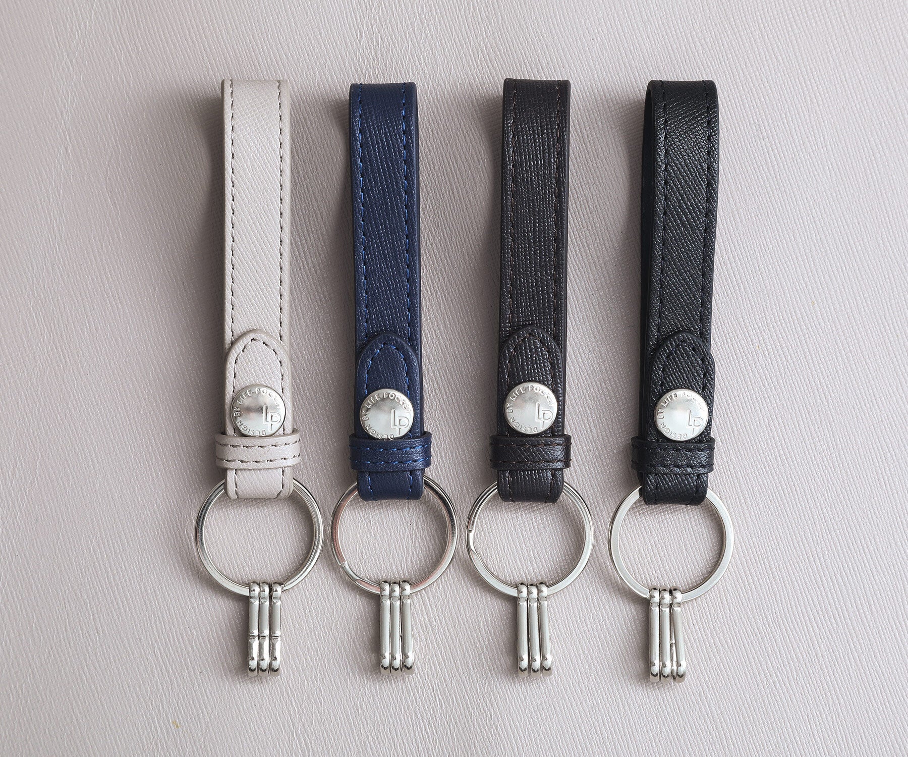 キーリングには、ストラップと同じサフィアーノレザーを使用したレザーキーキャップがセットになっております。