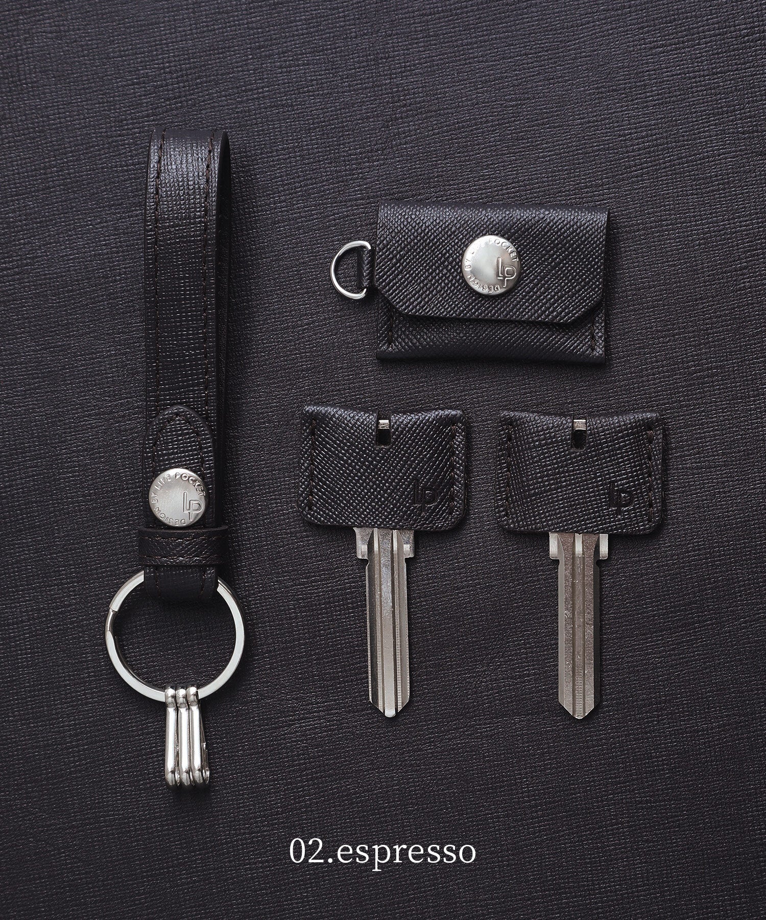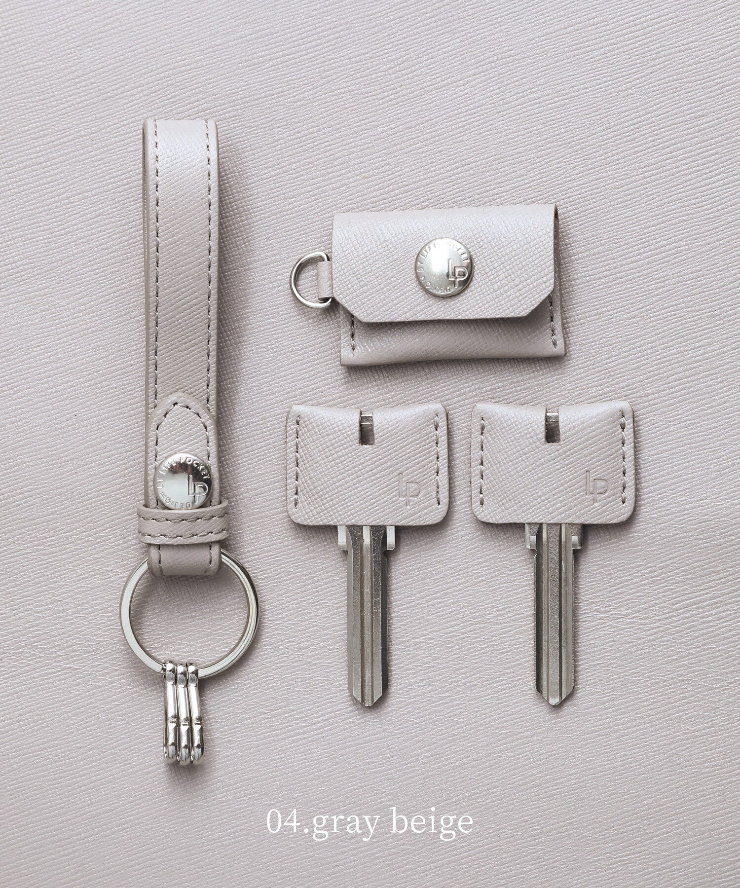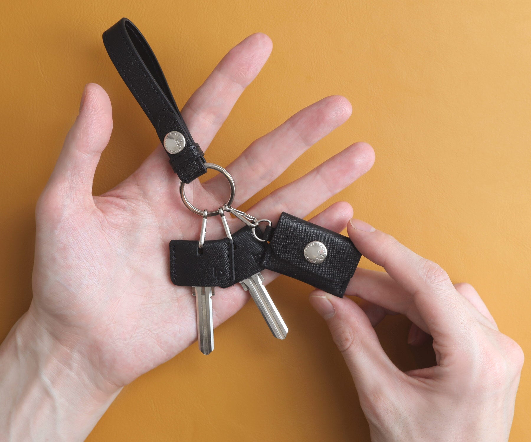 キーリングには、ストラップと同じサフィアーノレザーを使用したレザーキーキャップがセットになっております。