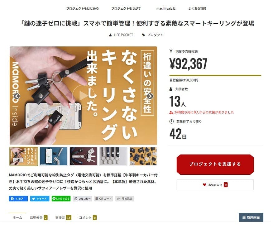 このたびは「MAMORIO搭載 なくさないキーリング “Smart Key Ring SAFFIANO”」をご支援いただき有難うございます。