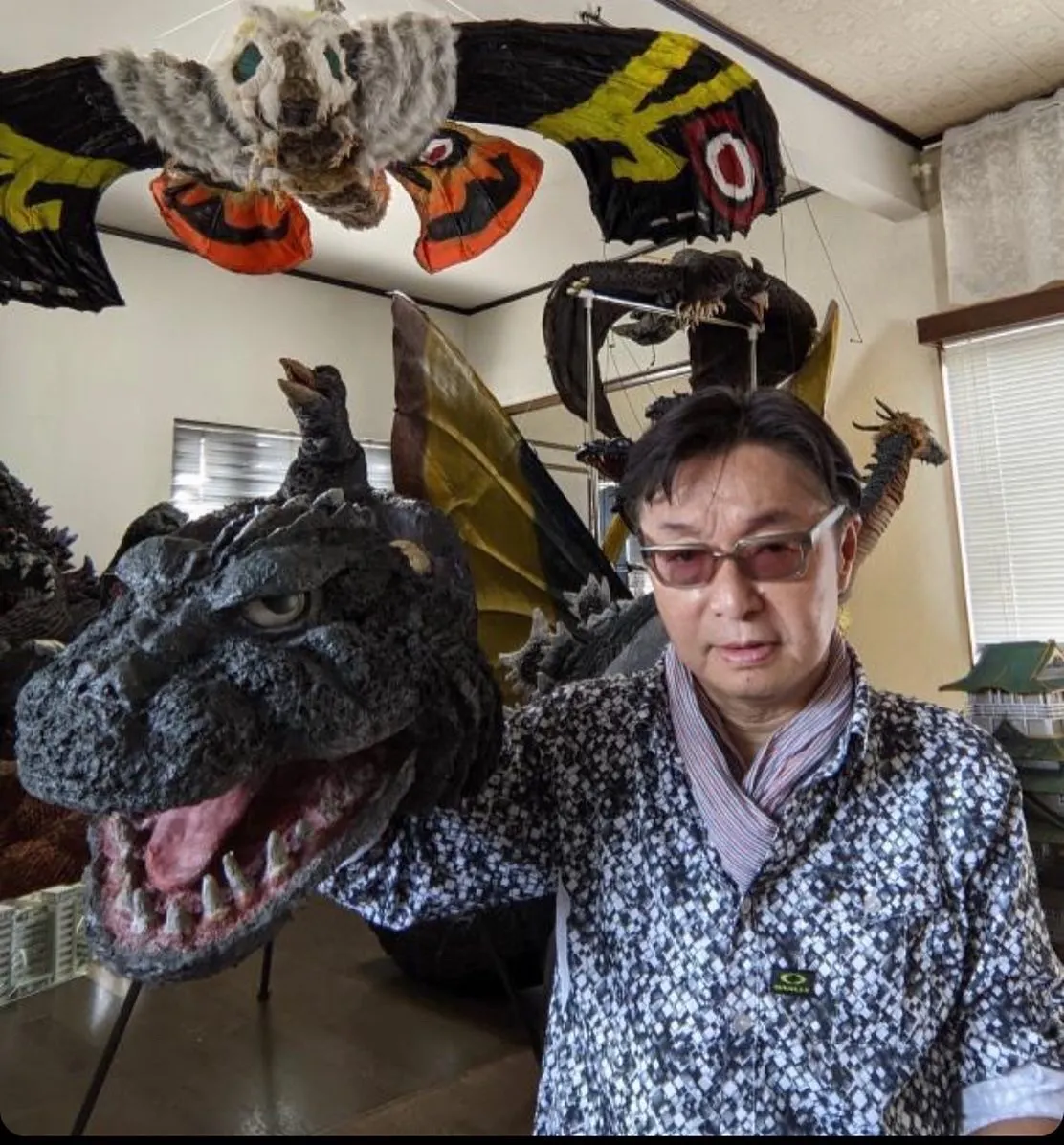 趣味で制作した数々のゴジラギニョールなどをInstagramやYouTube公開していたのを発見して、即スタッフに招いた人。自宅に伺ったところ、その圧倒的なゴジラ収集物と様々な怪獣造形の多さに驚愕。丸々一軒家に博物館さながらに飾られた怪獣たちは、入場料を払ってまでも見る価値あり。今作では慣れたギニョールヘッドと全身ギニョールで参加。