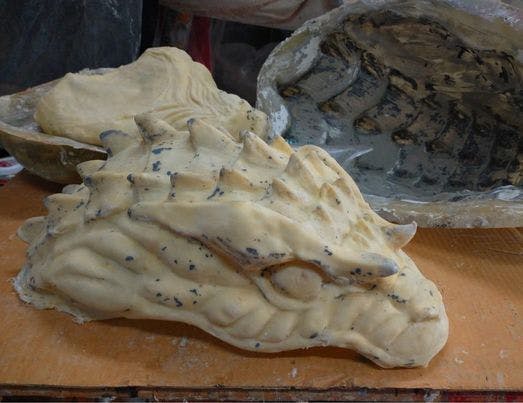 少し体調を崩していた金森氏ですが、粘土原型から石膏形、ラテックス作業に入りました。監督の僕も金森氏も心は子供、身体はジイさん!?体調管理には気を付けなければいけない歳。ラテックスは匂いが臭いので、怪獣造りは激務なのです。