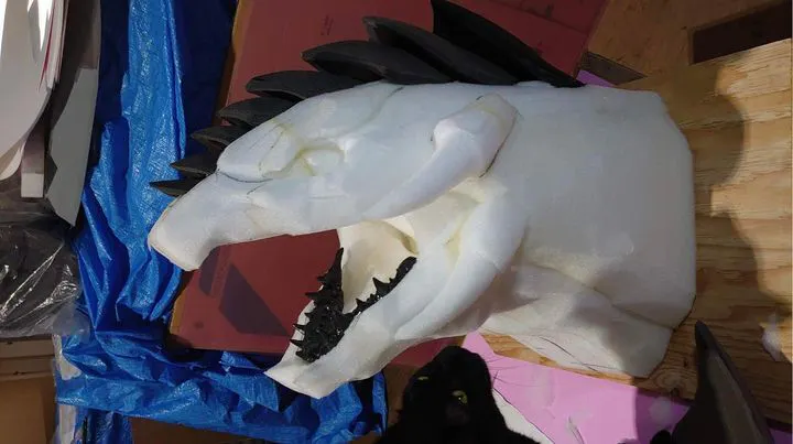 ツエニー所属の松本朋大氏担当のゴウラ着ぐるみヘッドが、形になりつつあります。ラテ皮は別物なので雰囲気だけでも!完成が見えますね。