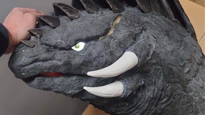 こちらのゴウラヘッドは着ぐるみのヘッドよりひと回り大きく、手動で動かすギニョールヘッドになります。