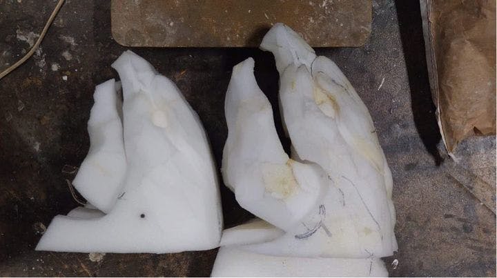 ジャロンボディ成形に入りました!細身の体型に肉付けしつつ尻尾のバランスを見て各パーツを接着ですが、作業はまだまだ続きます。