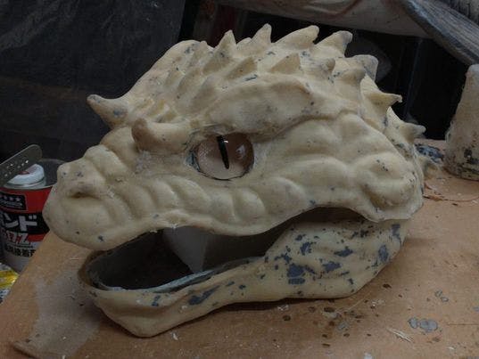 ツエニー所属の松本朋大氏担当のゴウラ着ぐるみヘッドが、形になりつつあります。ラテ皮は別物なので雰囲気だけでも!完成が見えますね。
