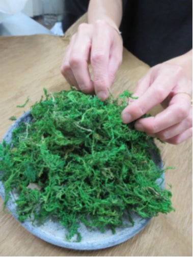 花工房の苔は、初心者の方でも簡単に扱えるように乾燥した苔を使っています。