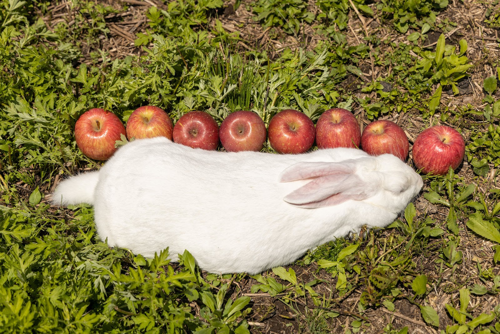 あきた牧場にいる大型のうさぎ。りんご8個分のながーい体!ジャンボうさぎはもっと大きく、体重は8kg程度にまでなる。