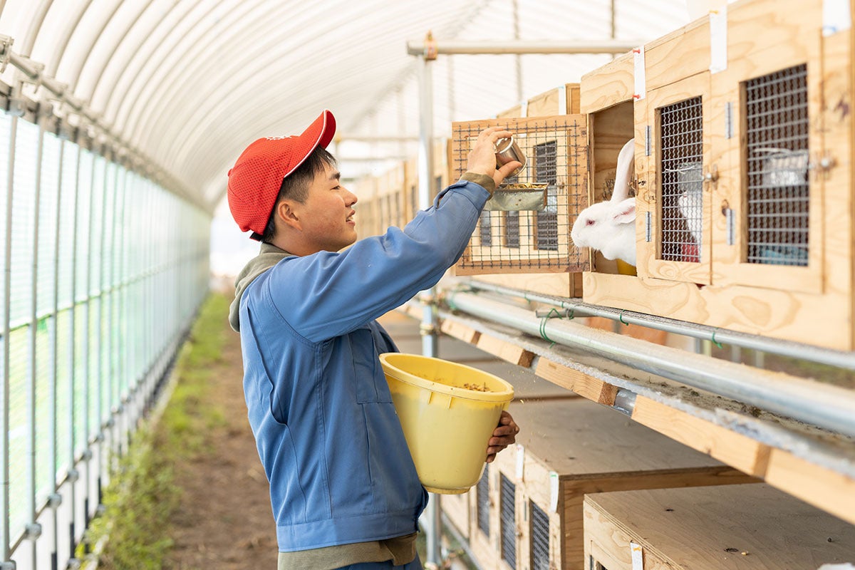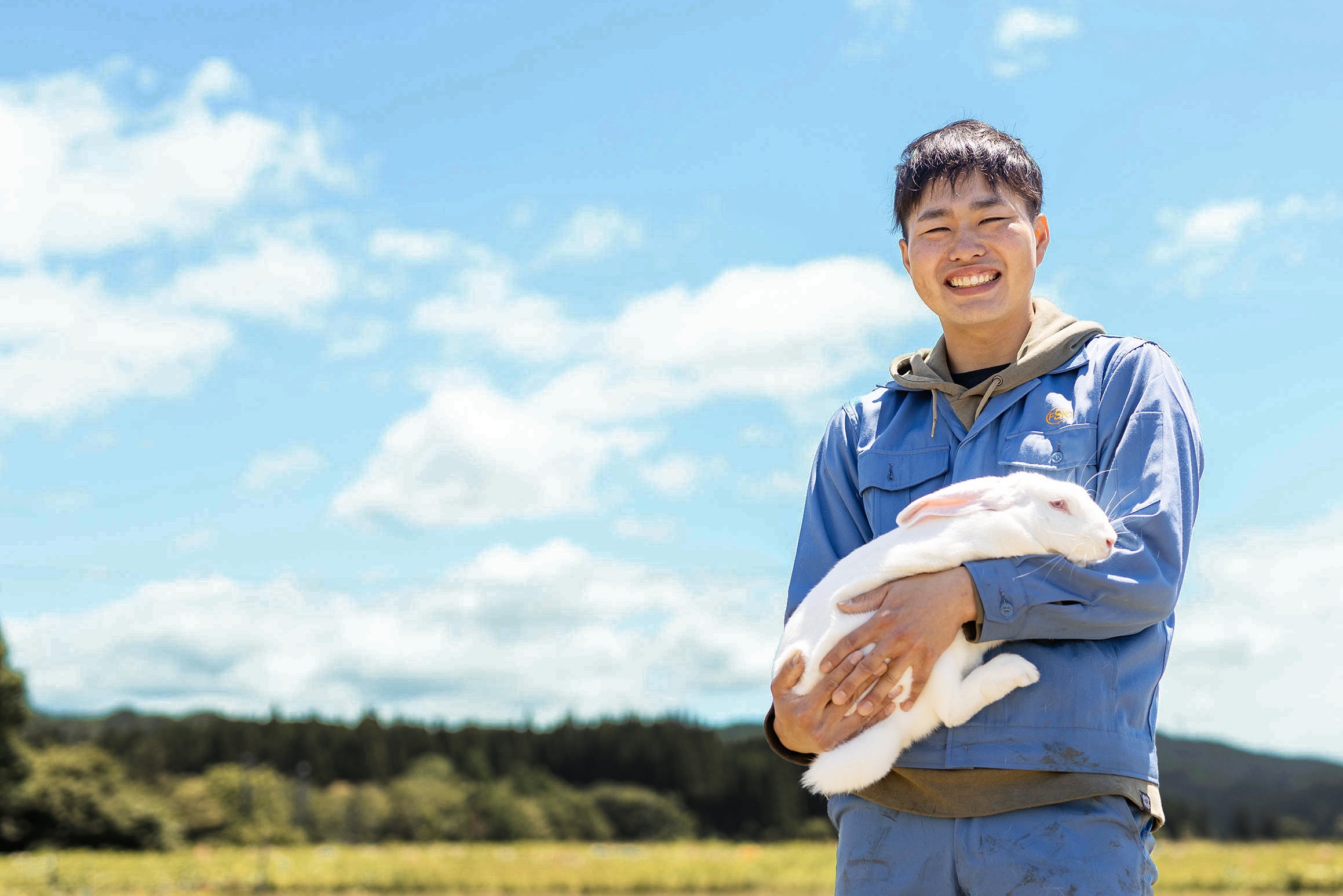 私は秋田県立大学在学中に秋田の魅力を知って、地元北海道に帰るのではなく秋田に残る決意をし 、2021年6月に一人で「羊とうさぎの牧場 あきた牧場」を開設しました。現在うさぎ85羽・羊37頭を飼育しており、みみみみみプロジェクトを通して新たに、ジャンボうさぎの繁殖・飼育に挑戦します。