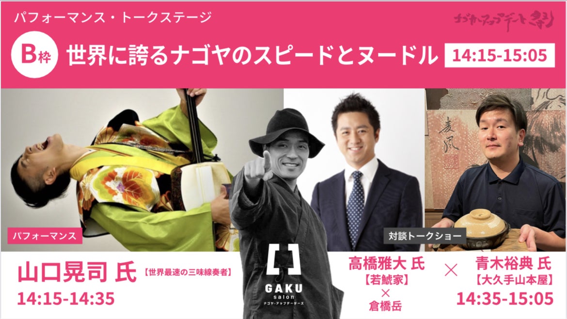 【日時:詳細はGAKU salonアップデート祭ホームページをご覧ください。(随時アップいたします。) / 会場:中部電力 MIRAI TOWER 3階 CASHIME内】