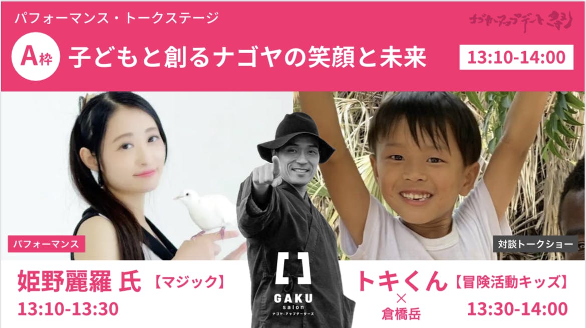 お子さん連れの家族に人気がでそうな此方は、マジックショーで大人気を博する姫野麗羅さんのパフォーマンス!そしてタンザニアに単独で渡った冒険活動キッズの対談トーク!もう、何が飛び出るかわかりません!!