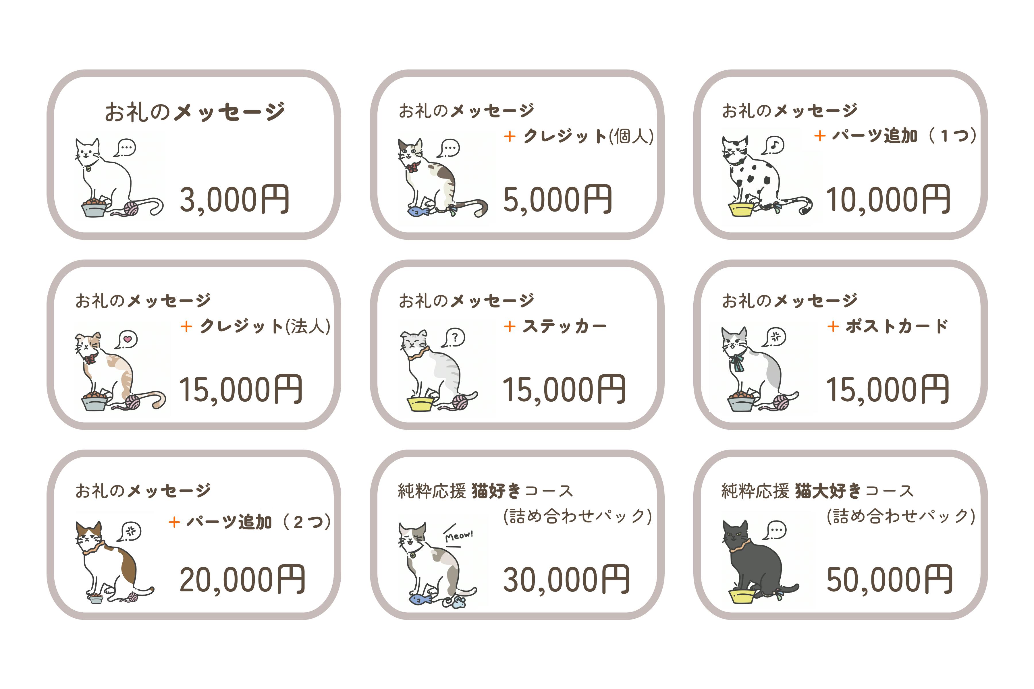 9)純粋応援 猫大好きコース (お礼のメッセージ + クレジット( 2年間 ) + 開発協力証明書(データ) 詰め合わせパック) ⇒ ¥50,000