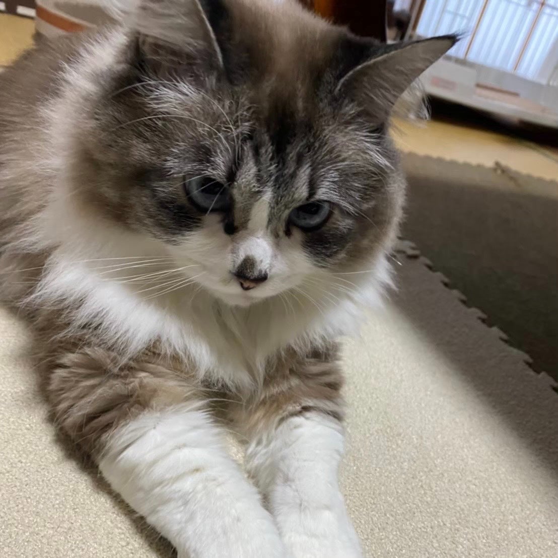 大きな青い目が特徴的でチャームポイントのこの猫ちゃん。
