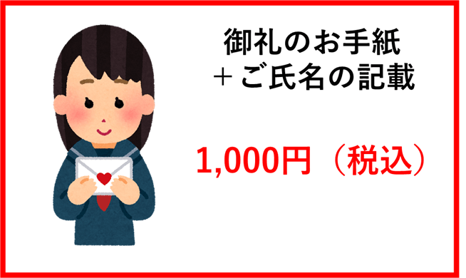 ※支援時、必ず備考欄に掲載を希望されるお名前をご記入ください。