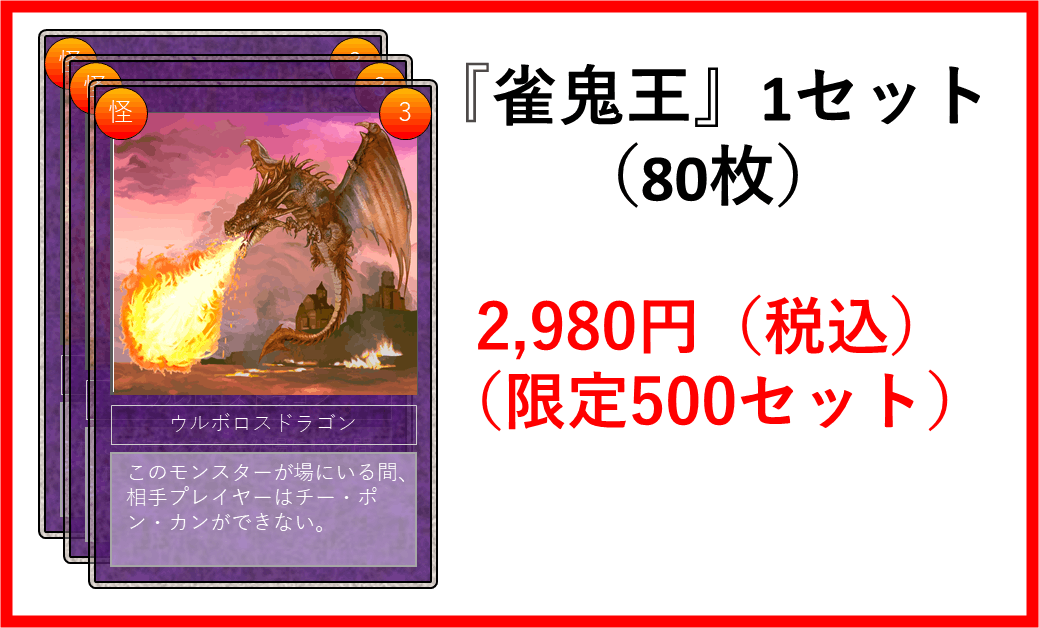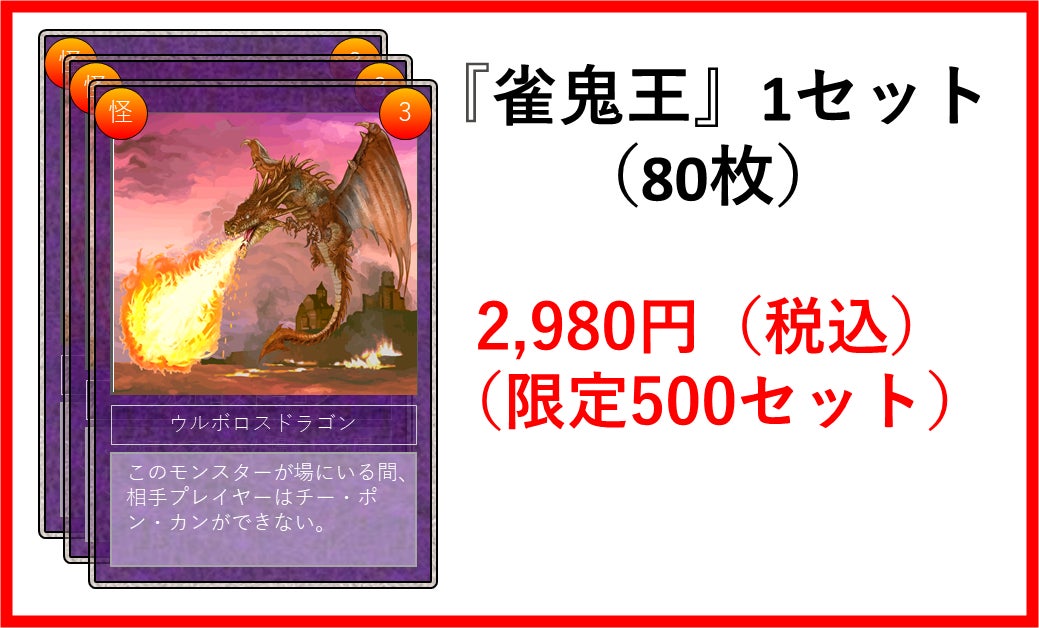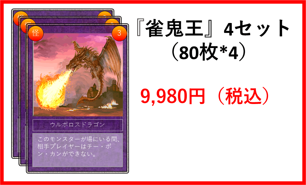 ・『雀鬼王』1セット(80枚)を送らせていただきます(1セットあれば4人麻雀で十分にお楽しみいただけます)。