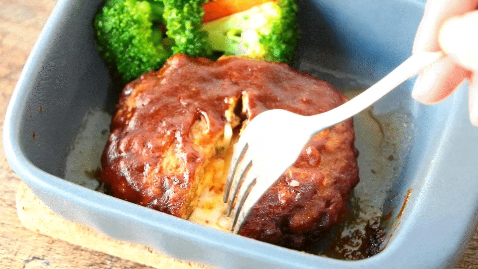 マルチトレーに直接具材を詰めてハンバーグを作ることも出来ますが、スーパーで買ってきたお惣菜の温め直しなどにも使えます。耐熱陶器だからこそ美味しくなるんです!その秘密はポイント②をご覧ください!