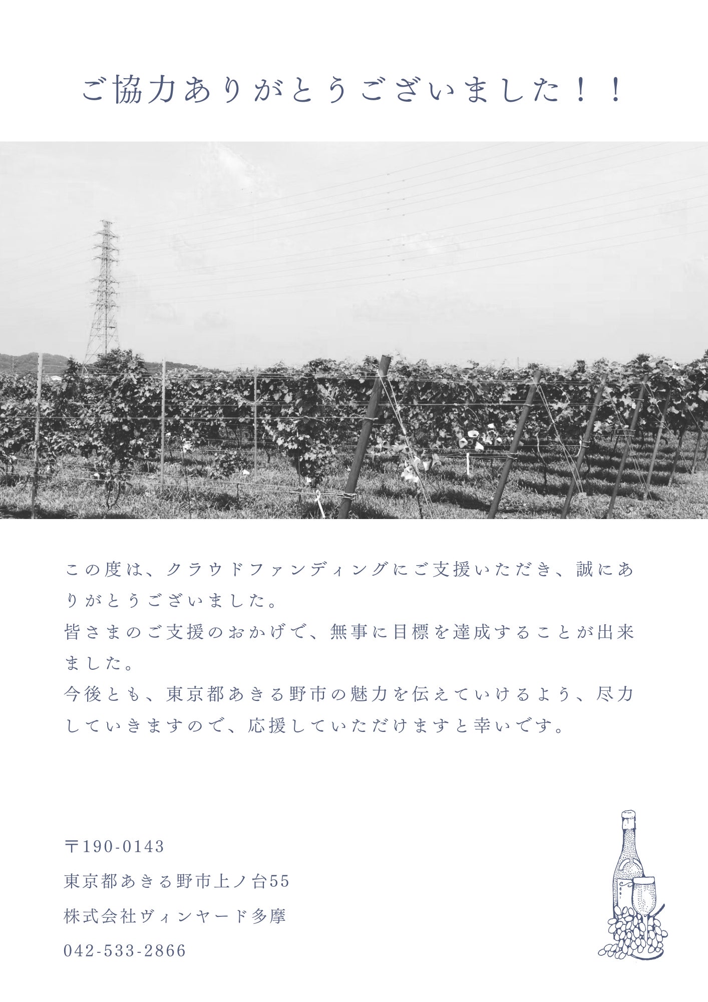 皆さまからのご支援を元に、あきる野市のお土産の一つのワンカップワインを作っていきます!!
