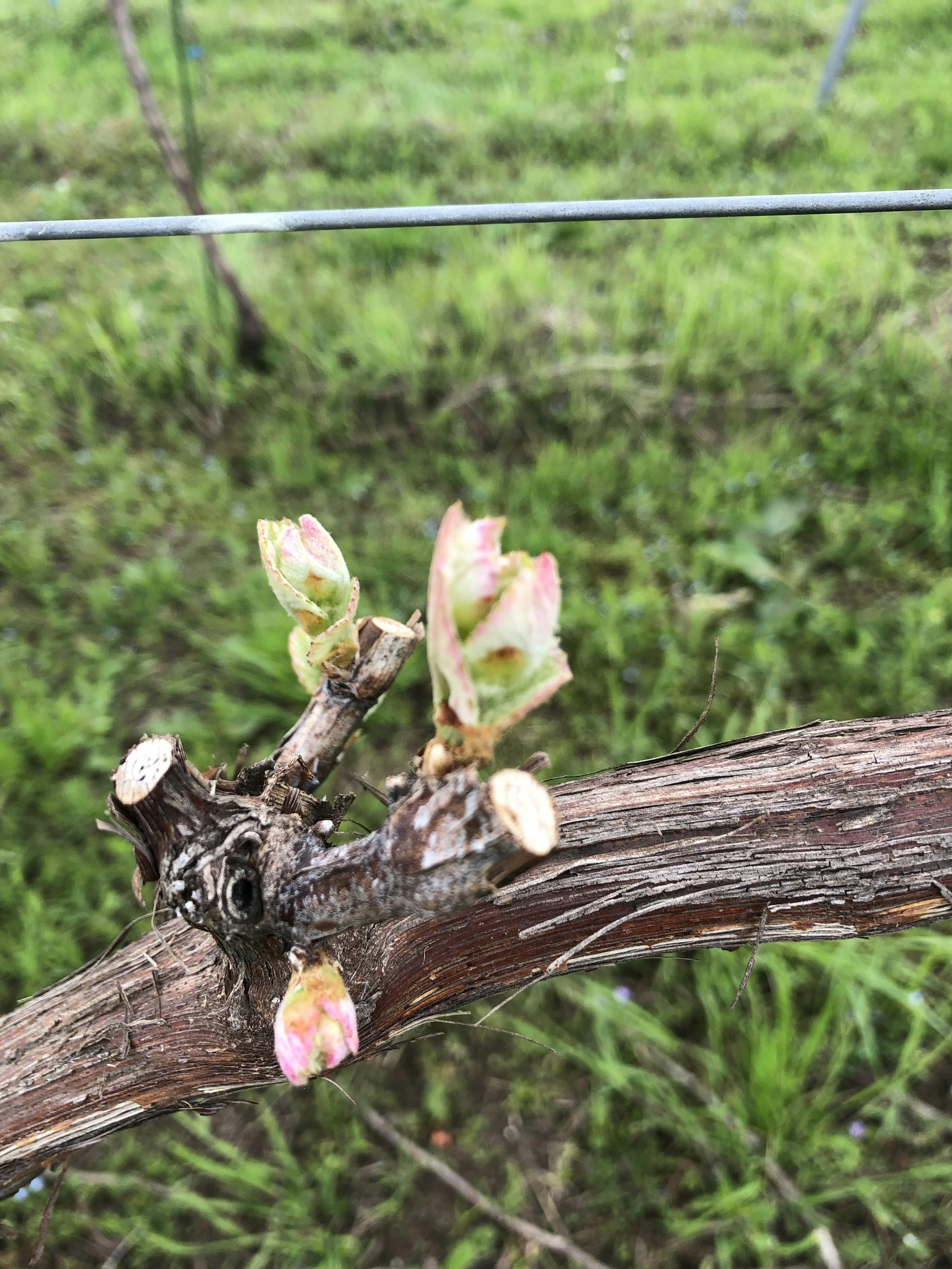 春になり、少しずつぶどうの枝の成長が加速していっております♬