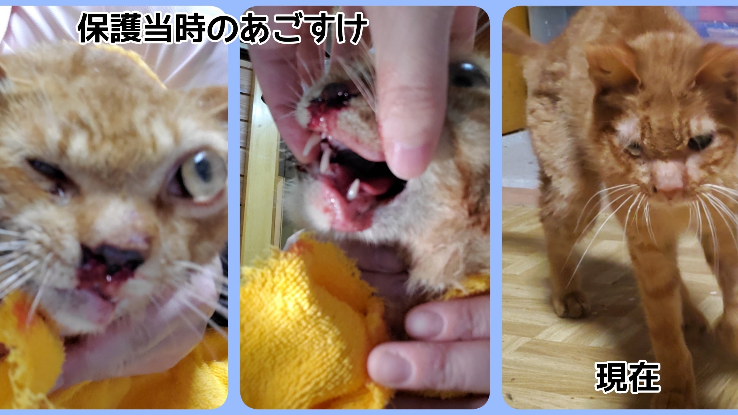 交通事故などで顎の骨折や脳に後遺症が遺ると、生涯固形物が食べられない子もいます。その場合は高栄養のウェットフードなどをあげるので、食事代も高額になります。またほとんどの子が外の過酷な生活でで生まれ育ったので、エイズまたは白血病、もしくはWキャリアで免疫力が低く、病気の予防のためサプリや専用薬も飲ませています。