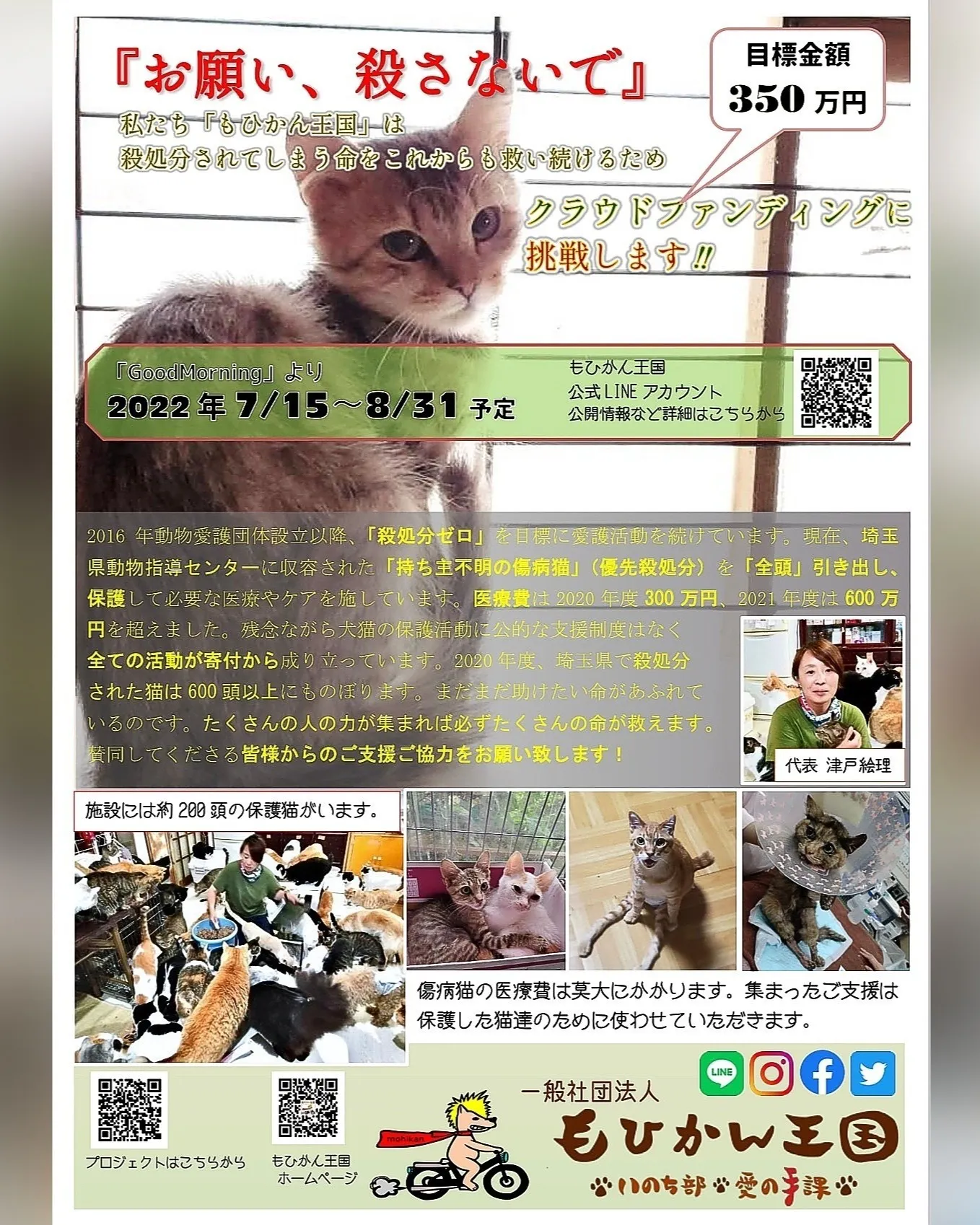 このクラウドファンディングをとおして、もひかん王国の事だけではなく1人でも多くの方に殺処分や動物愛護団体の活動の現状を知ってもらいたい、という思いから、ポスターやチラシも一目で伝わりやすいものをみんなで思考錯誤しながら作成しました。