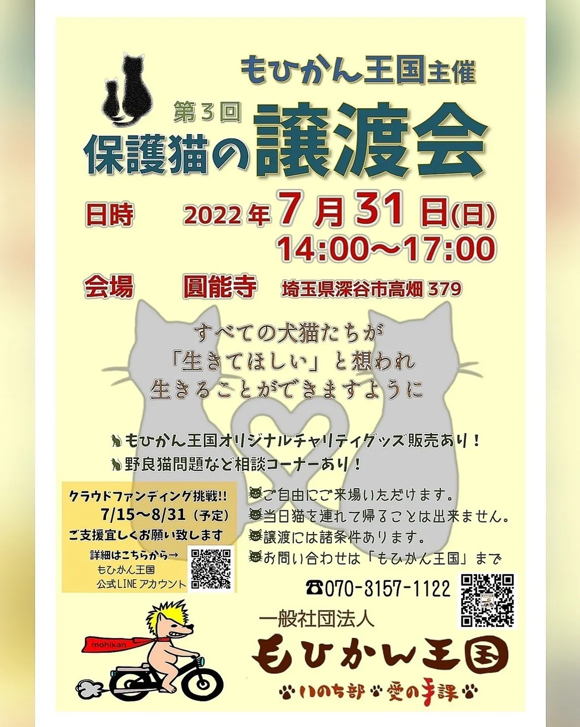 施設での猫、犬、鳥、亀たちの世話の他、今週末はもひかん王国主催の譲渡会があります!