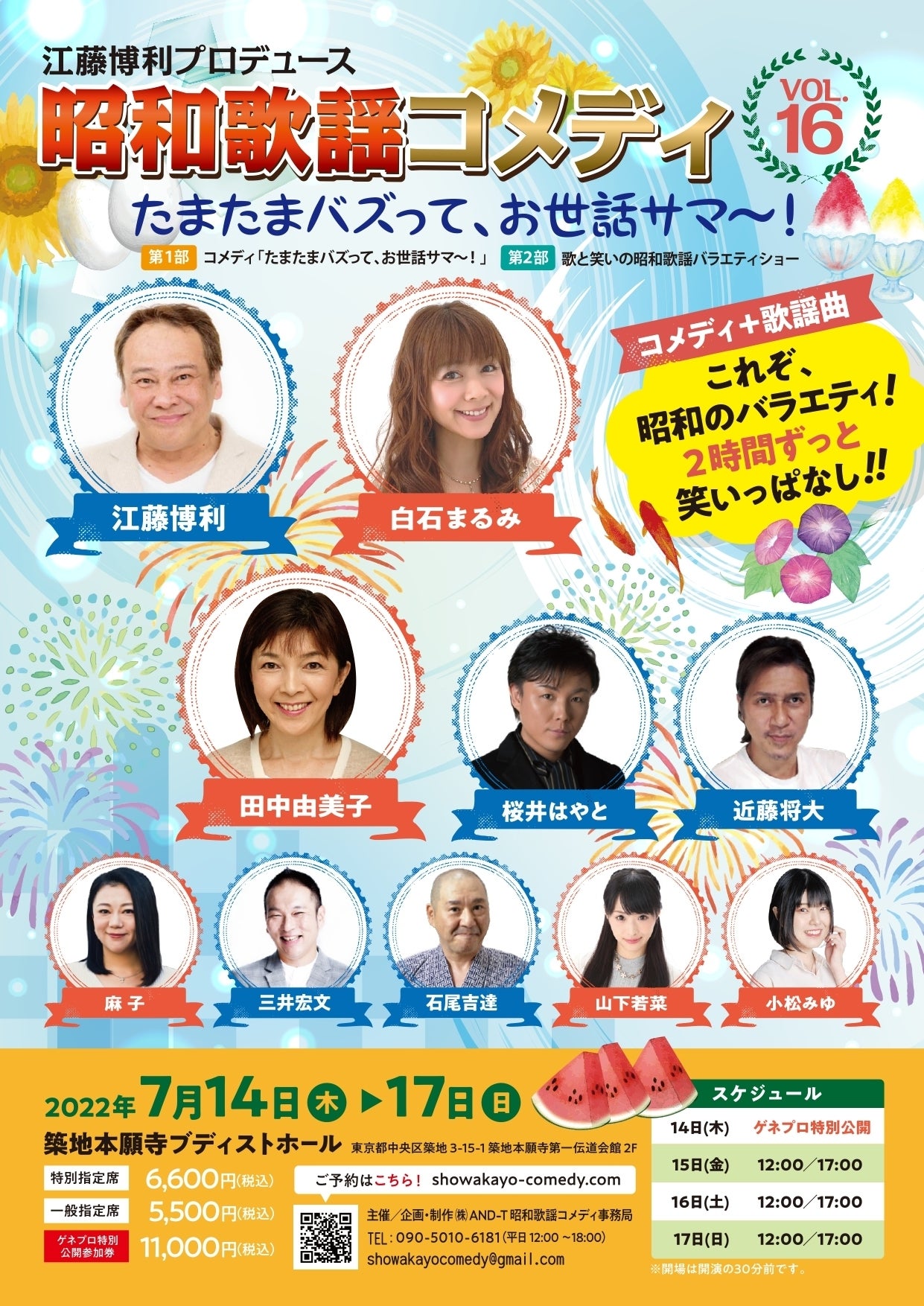 ●7月15日(金)~17日(日) 「昭和歌謡コメディVOL.16」上演済み(築地本願寺ブディストホール)