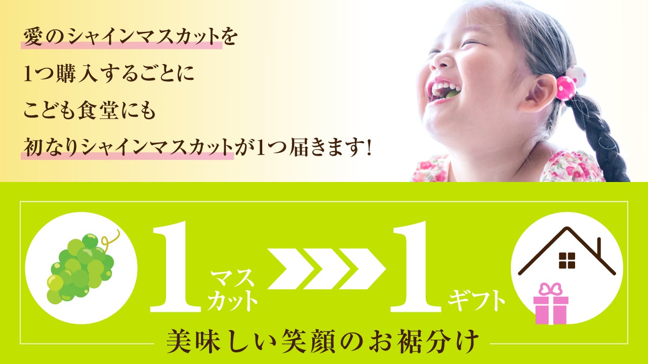 そこで今回のクラウドファンディングでは、愛情をたっぷり注いだ自慢のシャインマスカットを皆様に美味しく食べてもらいながら、次世代を担う子どもたちにも美味しい”初なりマスカット”をお裾分けできるプロジェクトを作りました。